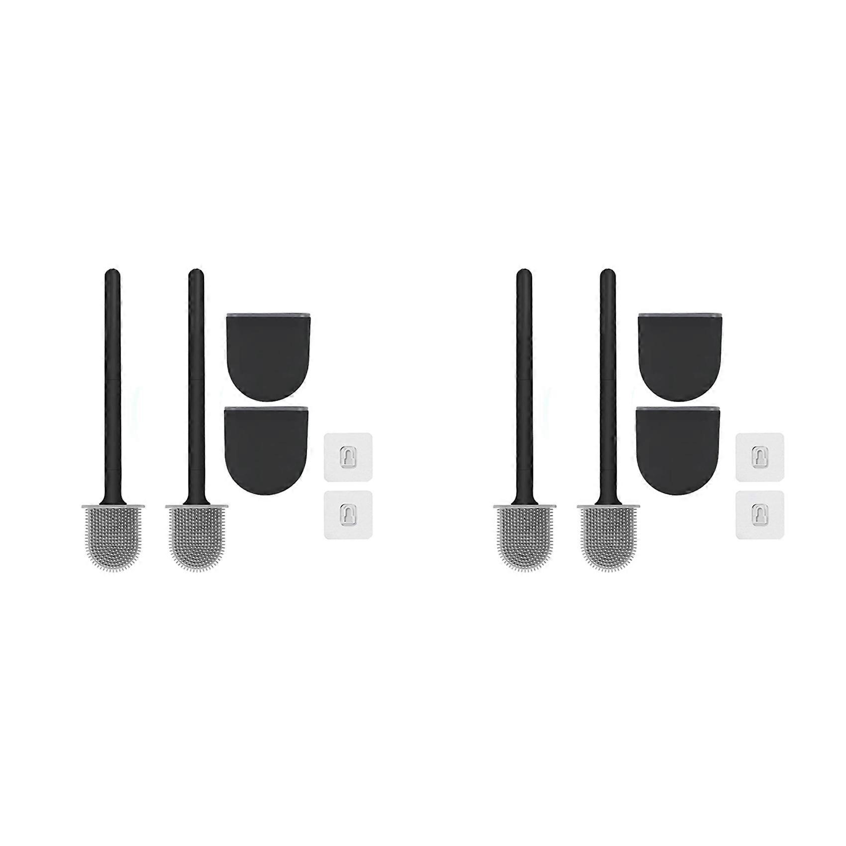 Premium Toilet Brushes & Holders, 4 Pack,Wall-Mounted (Without Drilling Holes), Deep Cleaner Silicone Toilet Brush Black