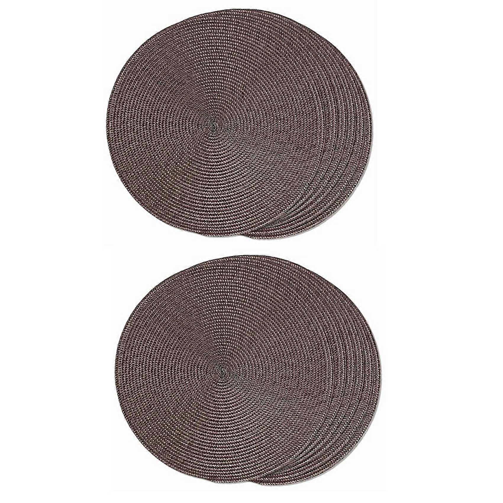 Round Braided Placemats Set of 12 Table Mats for Dining Tables Woven Washable Non-Slip Place Mats 15 Inch(Brown)