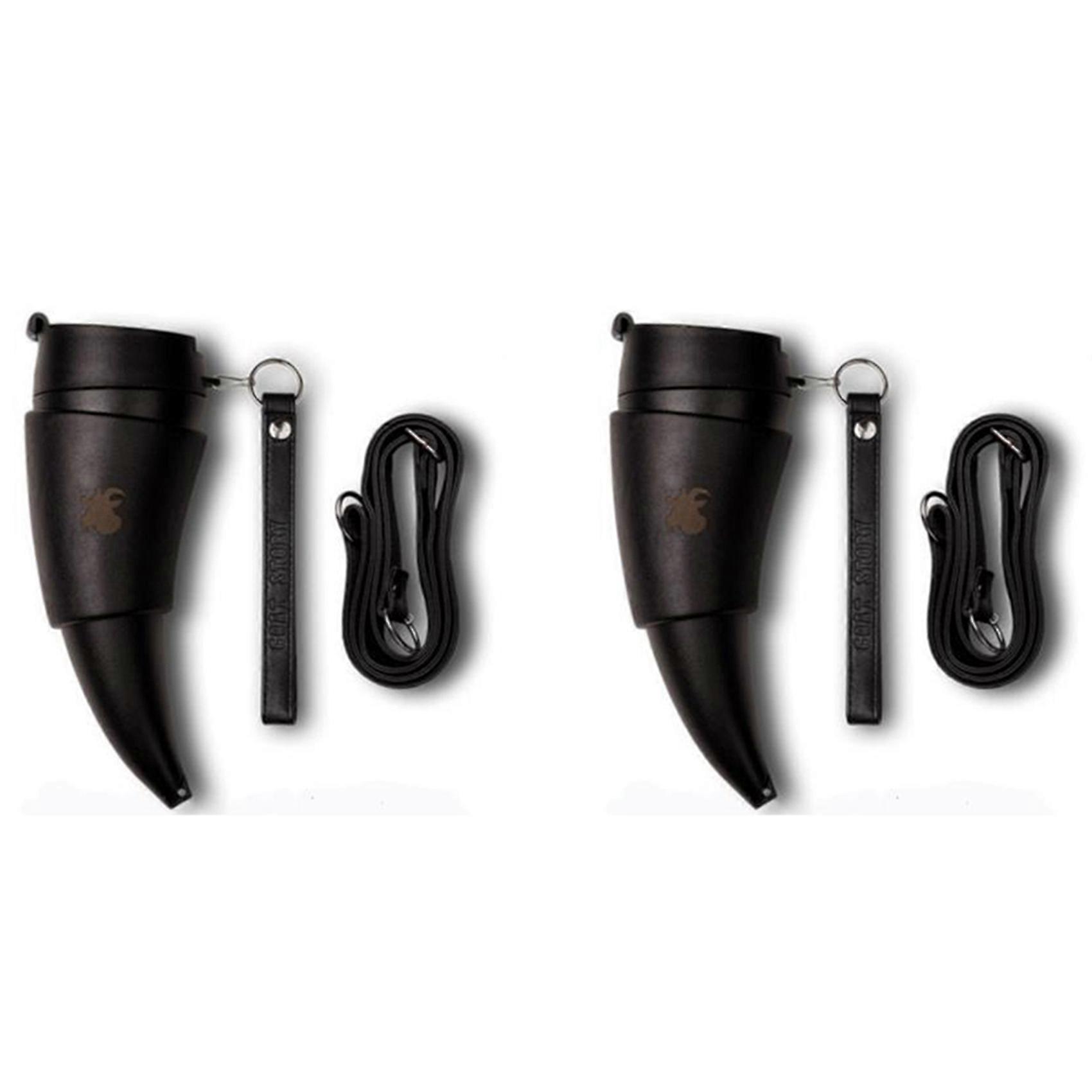 2X Goat Horns Coffee Mug 230ML Stainless Steel Vacuum Cup Thermos Flask Tea Cups Water Bottle with Rope-Black