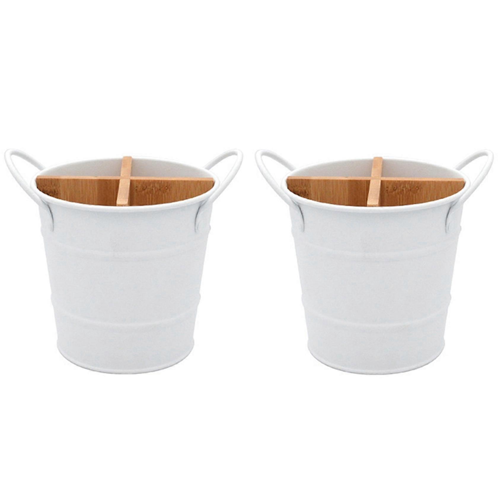 2X Kitchen Cutlery Organizer Knife Stand Storage Holder Separate Spoon Fork Chopstick Kitchenware Cooking Tool White