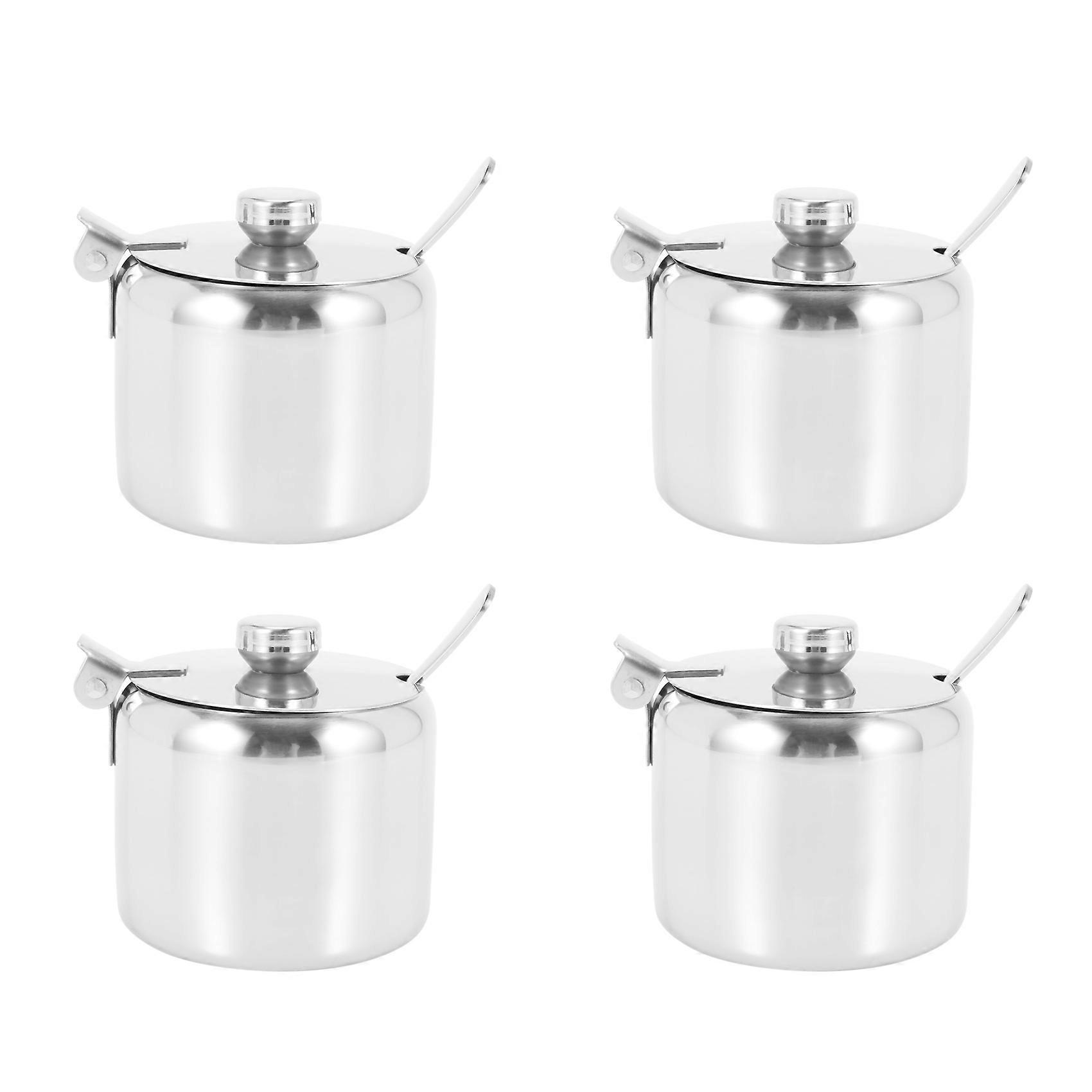 4X Stainless Steel with Lid and Spoon Sugar Bowl Seasoning Jar Seasoning Jar Tableware Spice Container