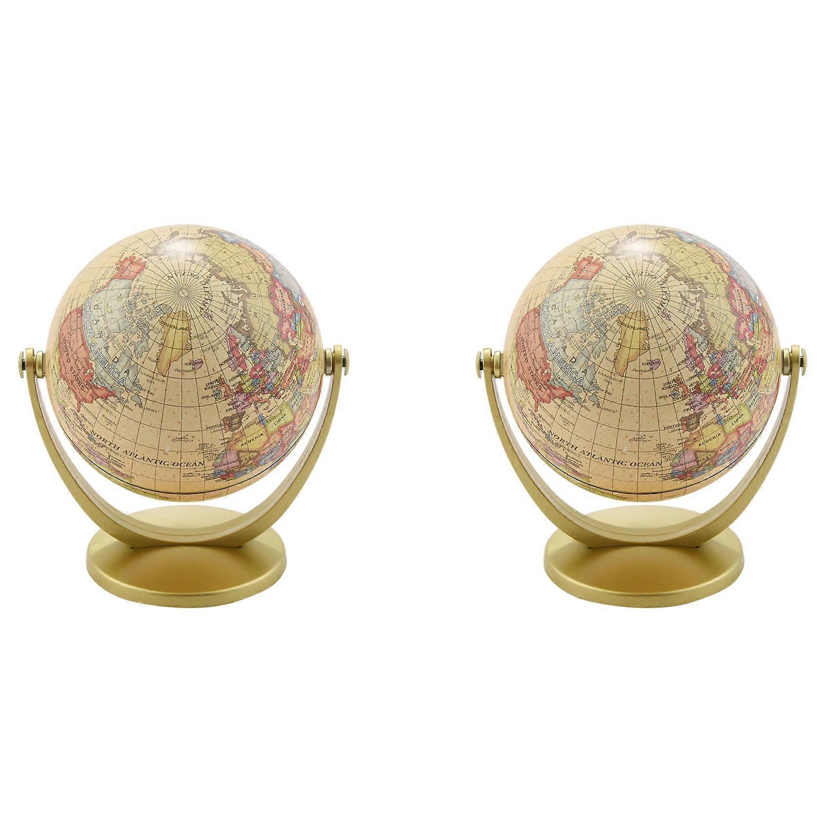2X Retro Rotating World Globe Earth Antique Home Office Desktop Decor Geography Educational Learning Map School Supplies