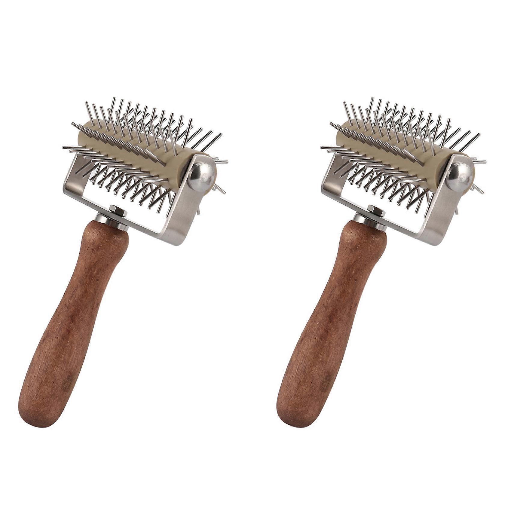 2X Stainless Steel Wheel Pizza Bread Needle Punchers Roller Pie Pastry Dough Pitter Durable Wooden Handle