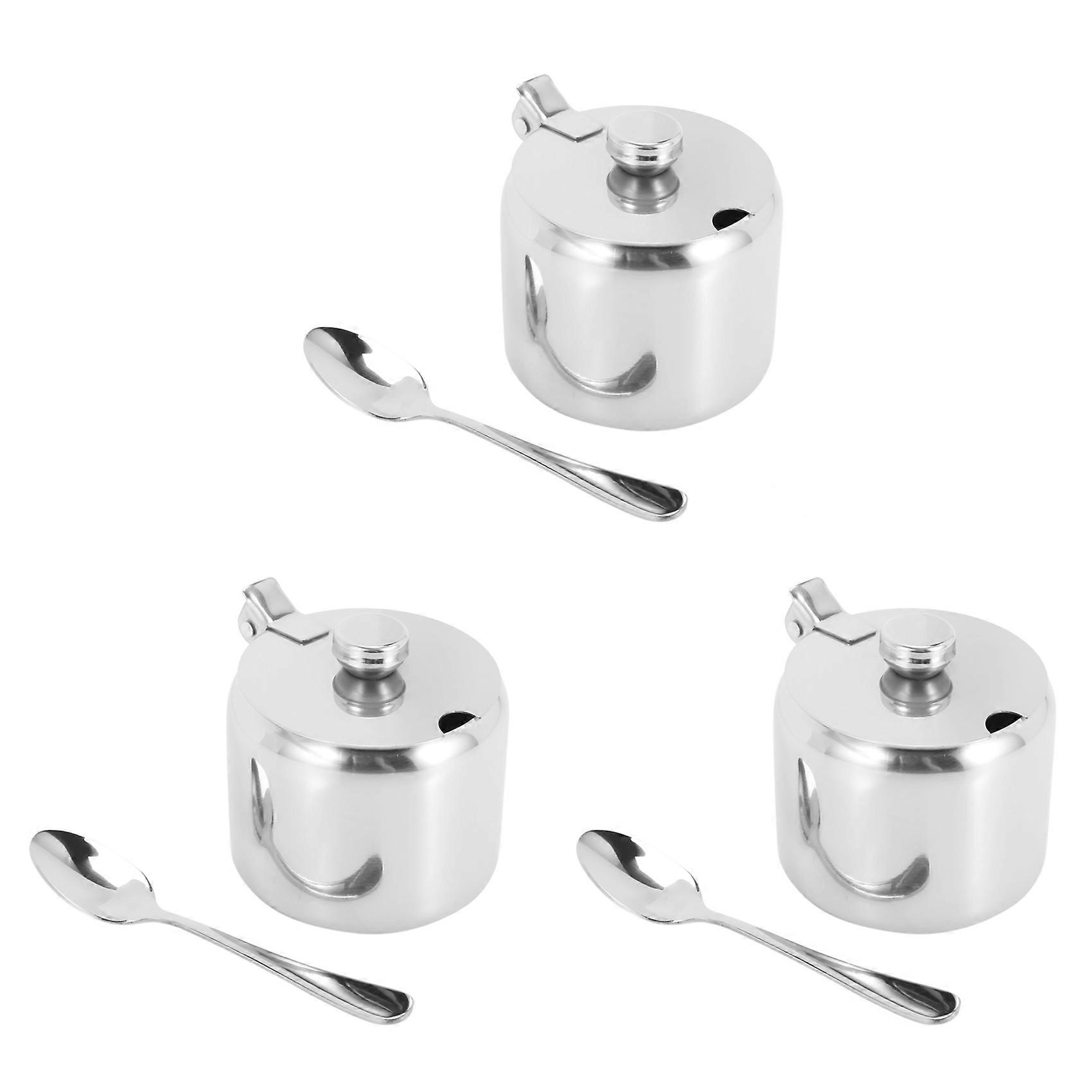 3X Stainless Steel with Lid and Spoon Sugar Bowl Seasoning Jar Seasoning Jar Tableware Spice Container
