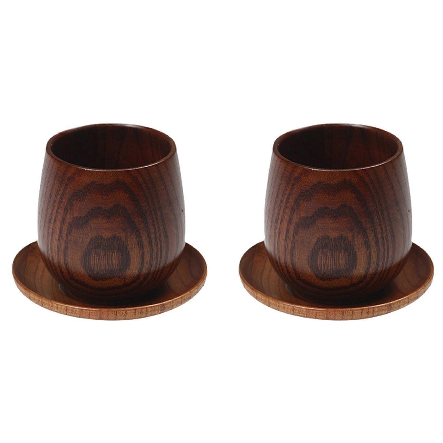 2X Japanese Style Log Cup Wooden Big Belly Cup Sake Solid Wood Retro Insulated Teacup Set Drinking Cup 150ML