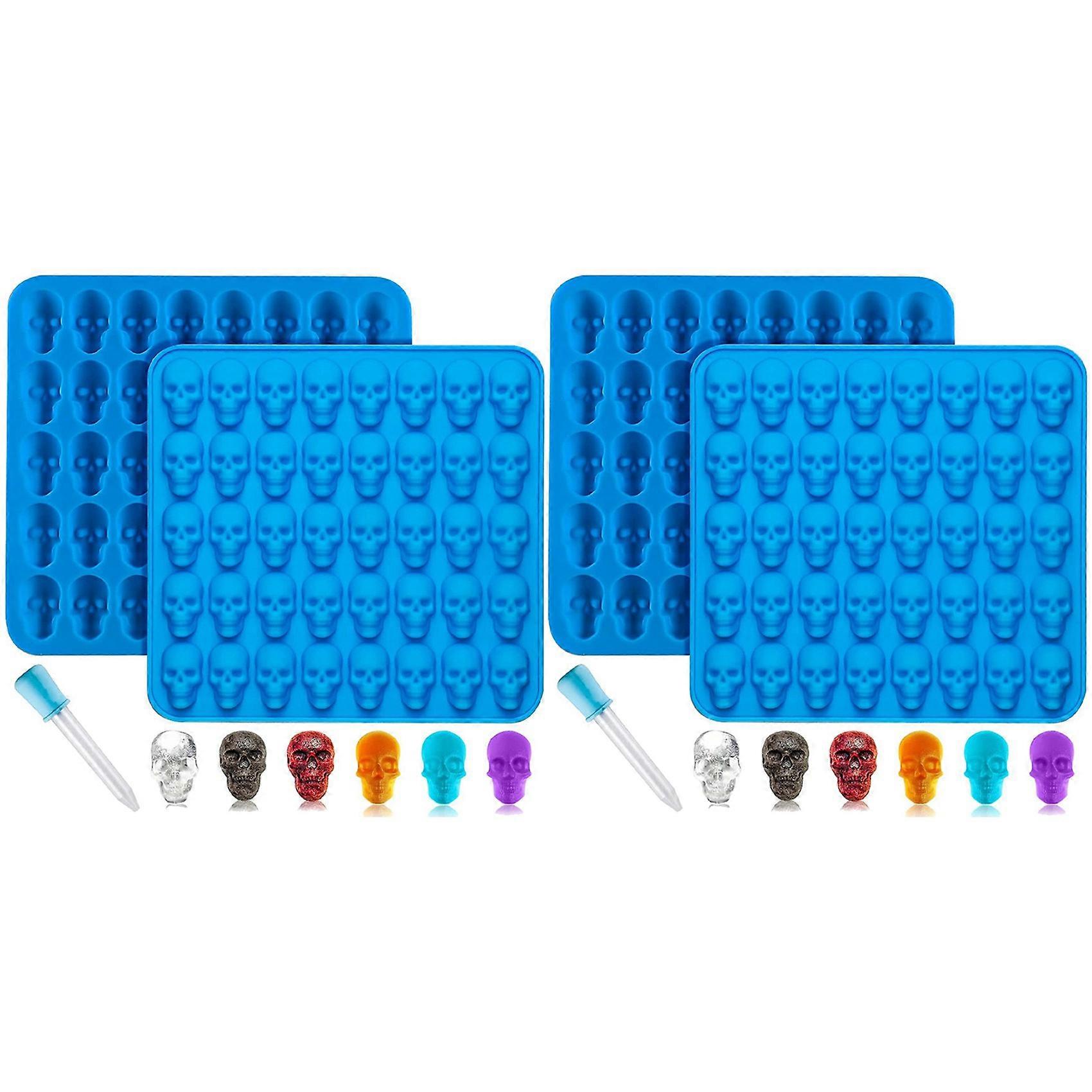 4Pcs Gummy Skull Candy Molds Silicone,Chocolate Gummy Molds with 2 Droppers Nonstick Food Grade Silicone for Candy Blue