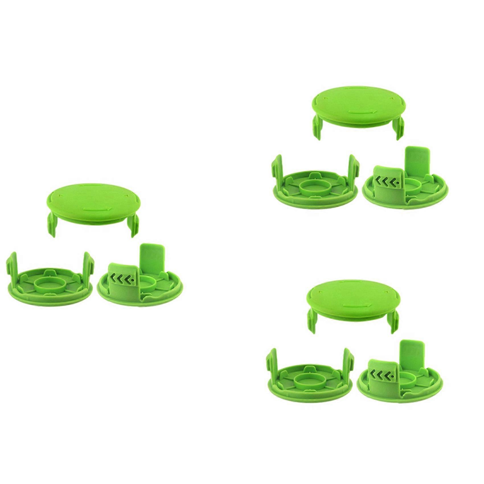 Spool Cap Specification: Compatible with for Greenworks spools, 16ft 0.065 inches, compatible with spools models 29252 and cap covers models 3411546A-6. Compatible Models: Compatible with for Greenworks weed eater string trimmer cap: 21332, 21222A, 21602, 21062, 21132, 21242, 21282, 21312, 21302, 21342, 21362, 21262, 2100202, 2100302, 2100702, STBA40B210, ST40B410, BST4000, ST40L00. 3411546A-6 spool cap, grass trimmer spool cap cover for Greenworks made of high quality ABS, durable for use. 3411546A-6 replacement spool cap for Greenworks protects trimmer line fixed spool, prevent weeds from getting stuck inside, avoid damage to the trimmer. Easy to install, no tools needed to install, simply unhook the old cap and this can be snapped in place over spool line, ready to go in seconds. colour: green Material: ABS Package Contents: 9 x Spool Cap