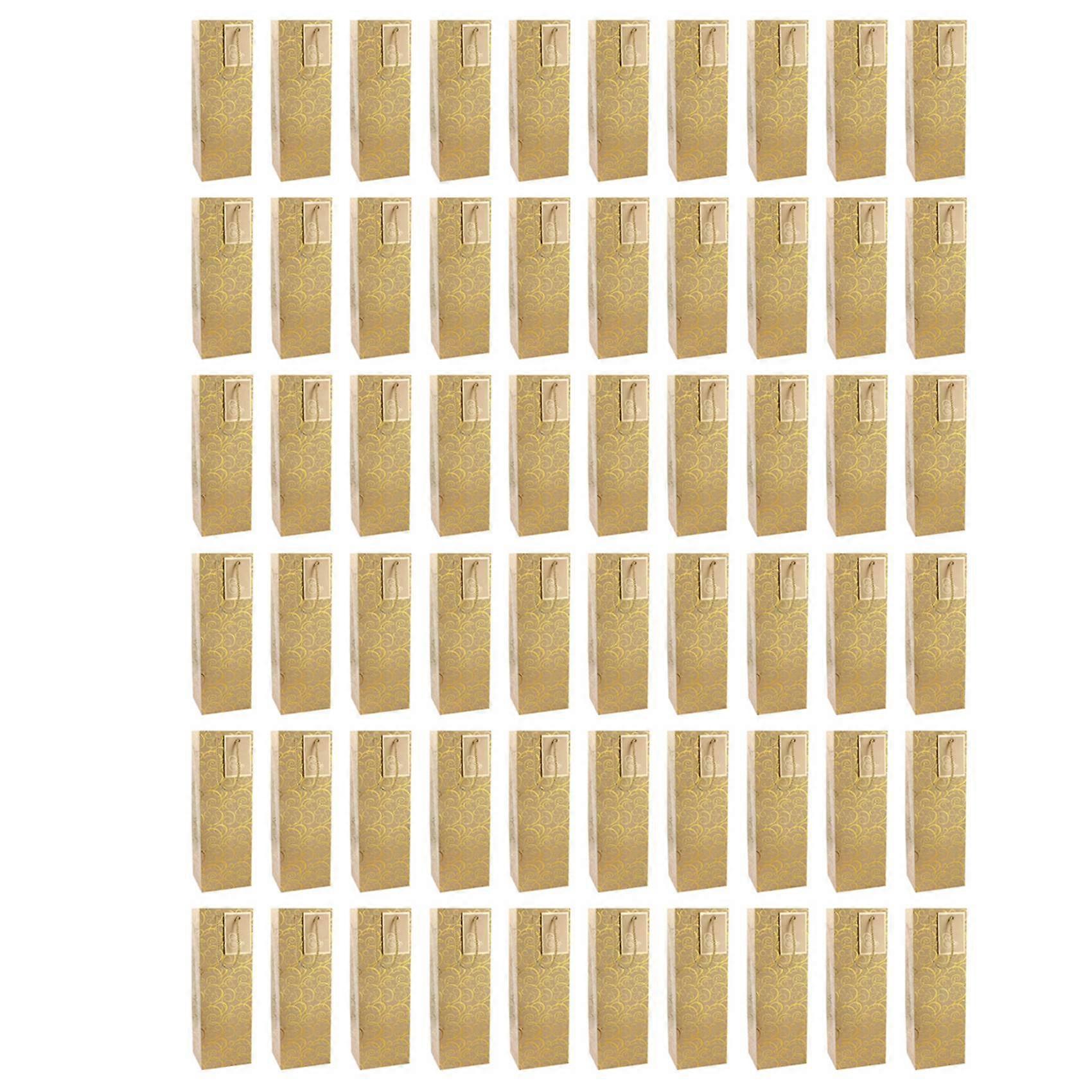 Wine Bags, Kraft Paper Wine Bag 60 Pcs Gift Wine Bags with Handles, Single Bottle Paper Wine Bag Bulk for Christmas