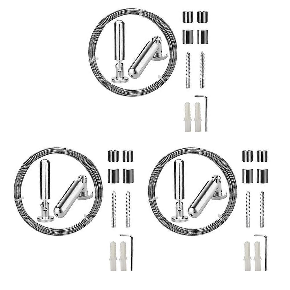 3X Wall Mount Curtain Wire Rod Set for Art Display - Photo Hanging Clothesline Window Curtain Tension Wire (5 Meter)