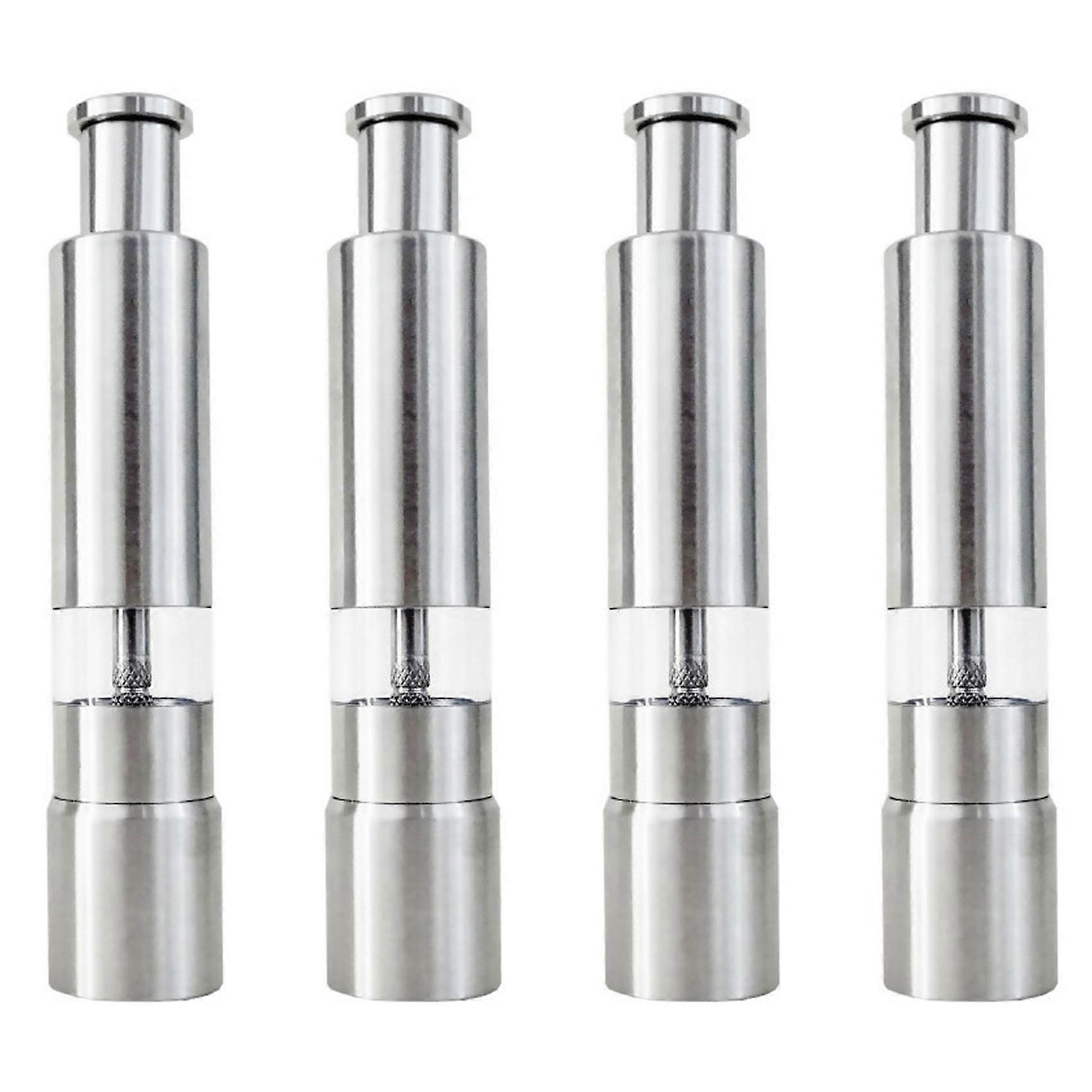 4X Salt and Pepper Grinder Stainless Steel Push Button Silver for Cooking Spice Thumb Push Pepper Mill Portable Grinder