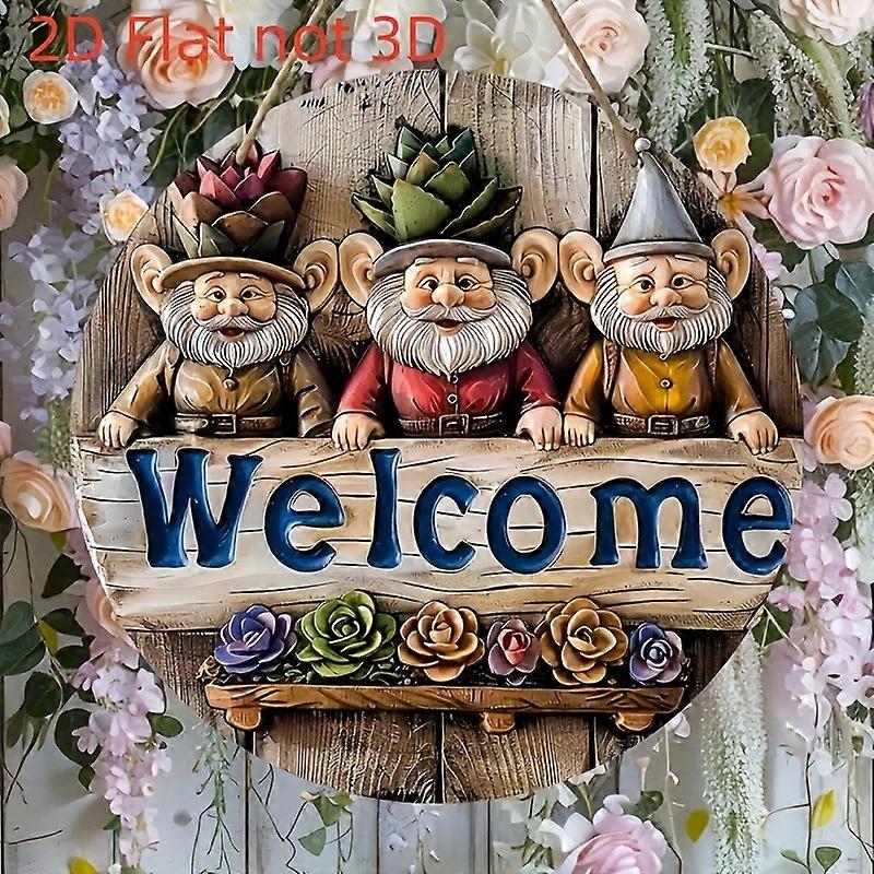 Retro welcome signs with little dwarfs, garland door decorations, home and farmhouse porch decorations