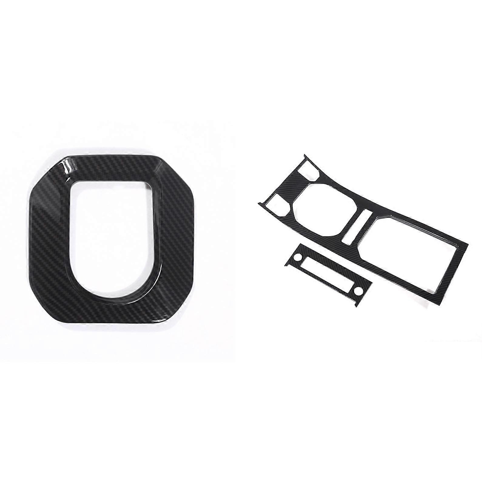 2 Set Car Accessories: 1 Pcs Car Gear Shift Frame Cover Trim & 1 Set Car Carbon Fiber Center Console Gear Panel Trim