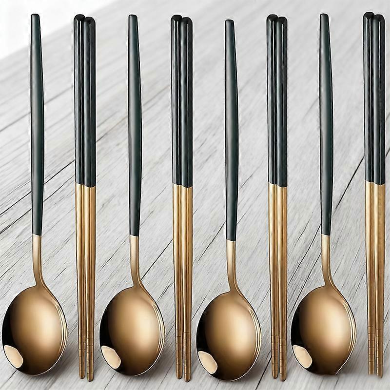 4Pcs Black Handle Golden Cutlery Set Stainless Steel Knife Fork Spoon Tableware Flatware Set Festival Kitchen Dinnerware Gift