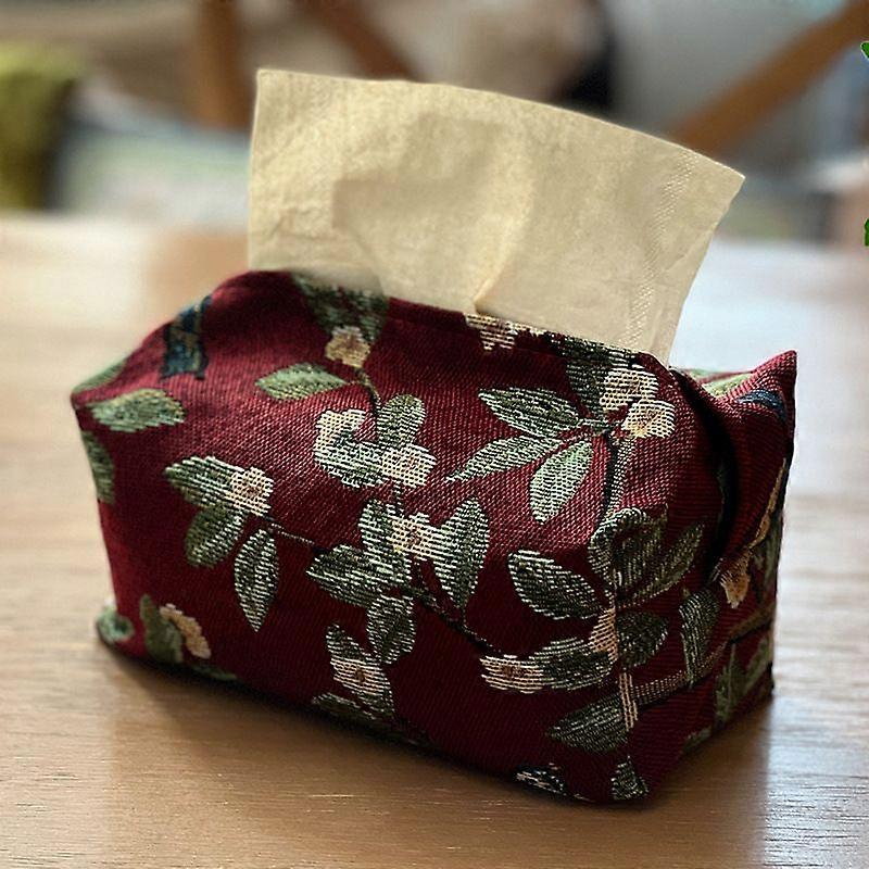 piece of European retro style tissue box cover/bag, fabric tissue box, jacquard tissue box for living room, household desktop tissue box, magpie on branch, maroon tissue box cover