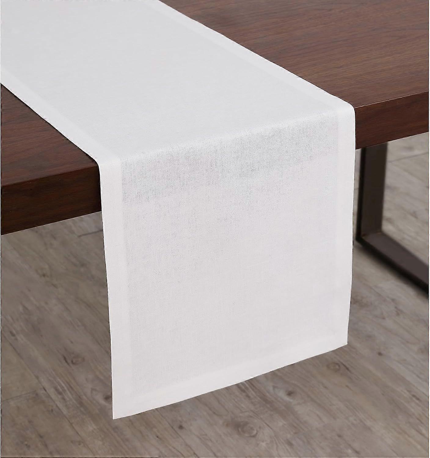 Dominant White Table Runner 60" - Diana Mediterranean Weight Pure Original Short Table Runner 14 x 60" Perfect for Dressing Tables and Coffee Tables -