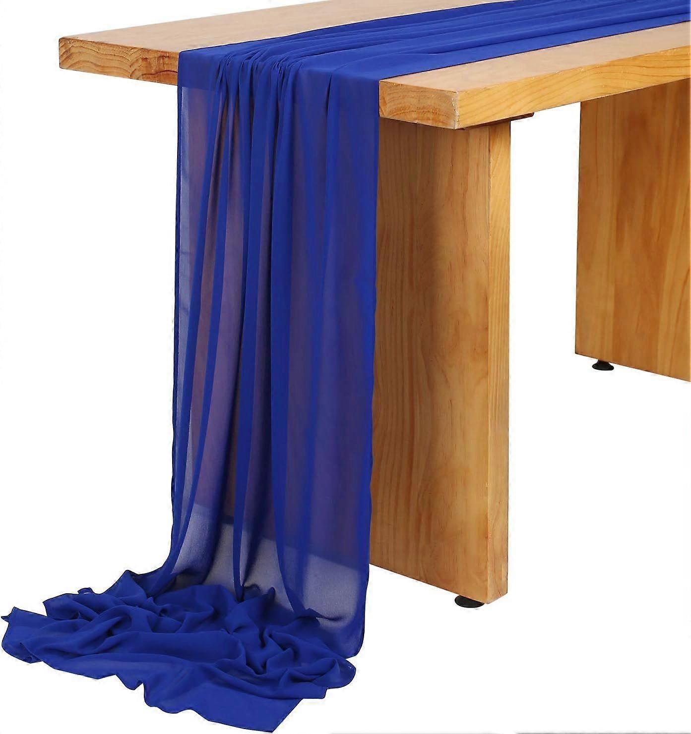 27 x 168 inches Royal Blue Chiffon Wedding Table Runner, Extra Long 14ft Blue Tablecloth Table Covering, Rustic Style Wedding Bridal Shower Baby Showe