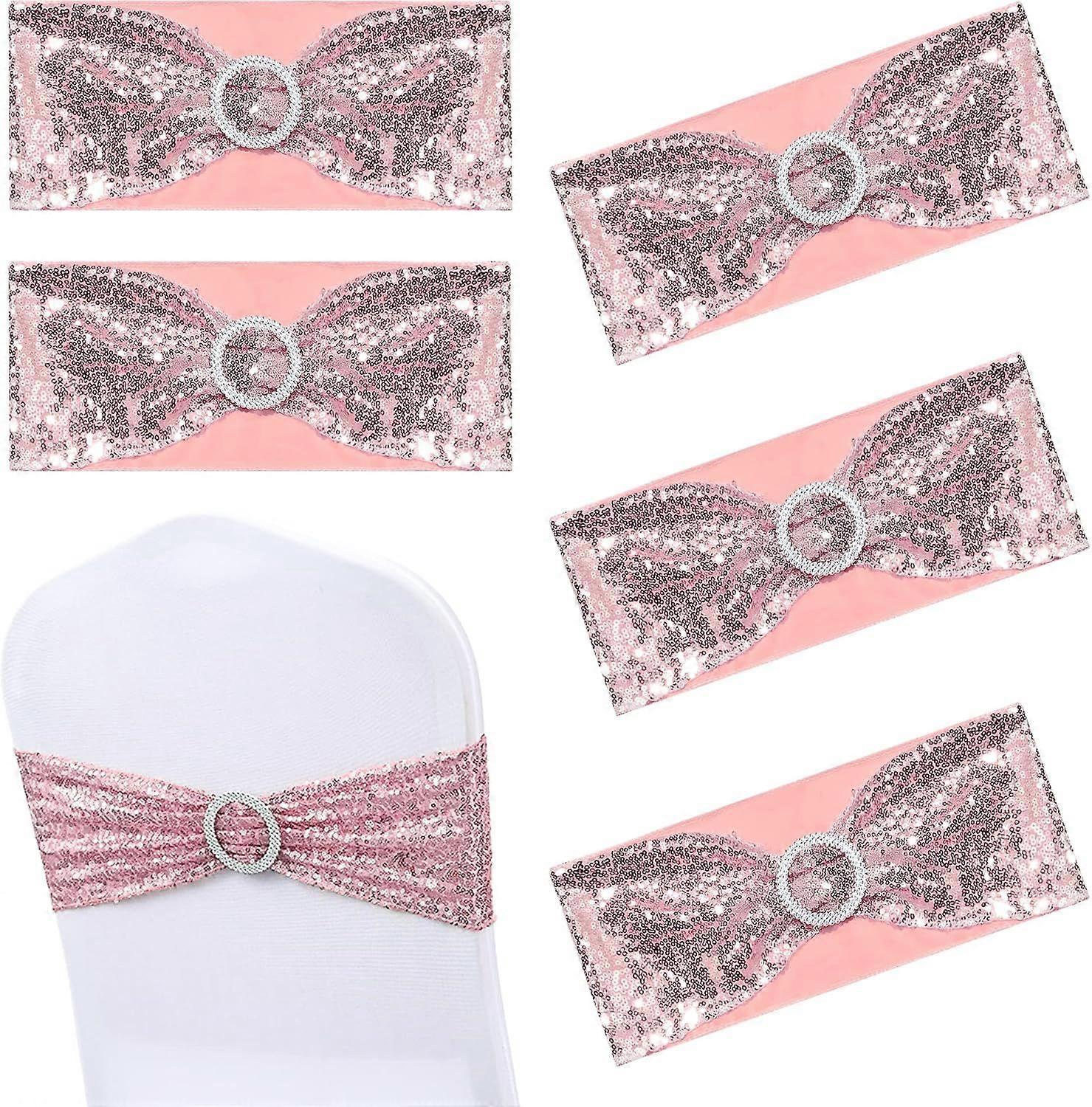 Set of 12 Sequin Chair Sashes, Spandex Stretchy Chair Covers Glitter Chair Band with Buckle Decorative Bows Ties for Wedding Party Supplies, Rose Gold