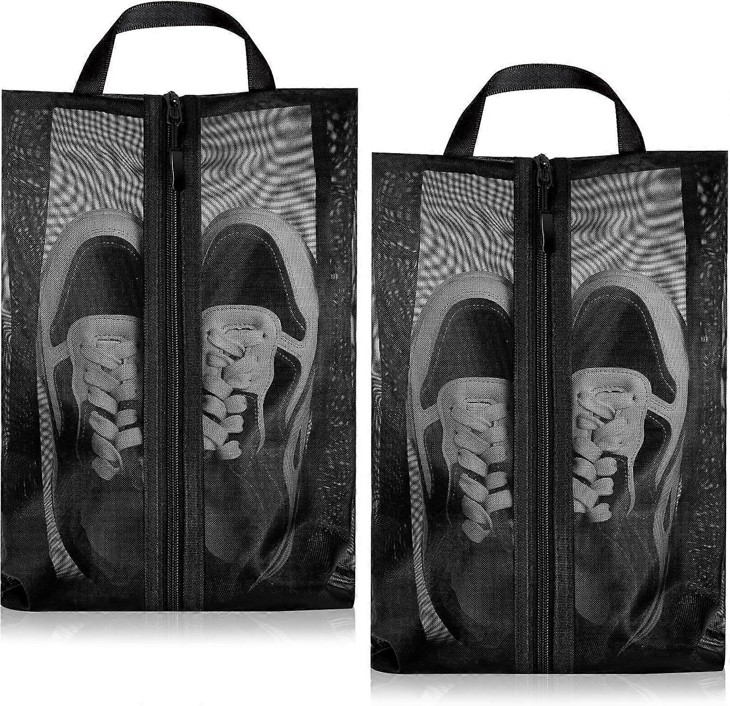 2 Pcs Sneaker Bags, Translucent Design protable Shoe organizer bag for Packing with Sturdy Zipper, Sneaker Bags for Golf Shoe, Gym, Soccer Cleat (Blac