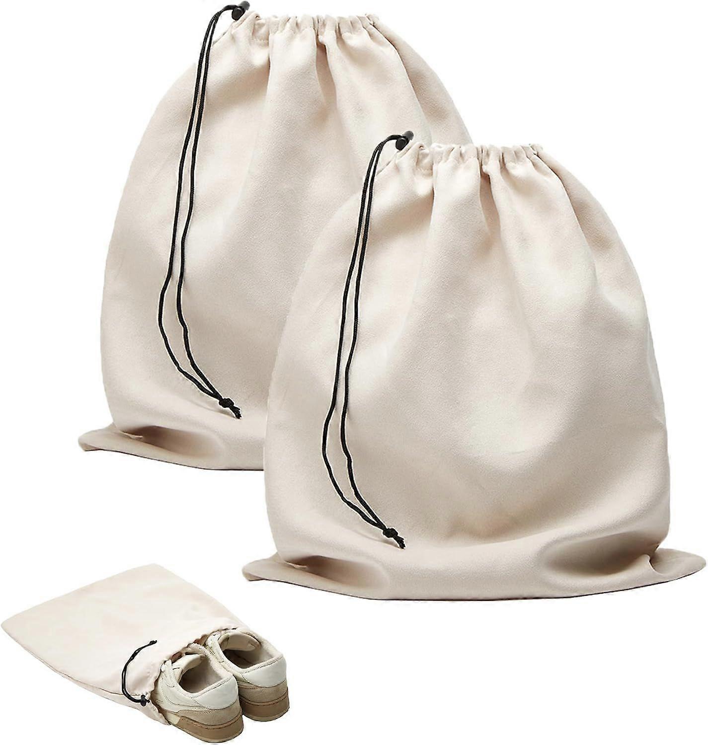 2Pcs Travel Shoe Bags for Packing, 17.7x13.8in Dust Shoe Bags Flannel Shoe Pouch with Drawstring Closure Washable,Beige Beige
