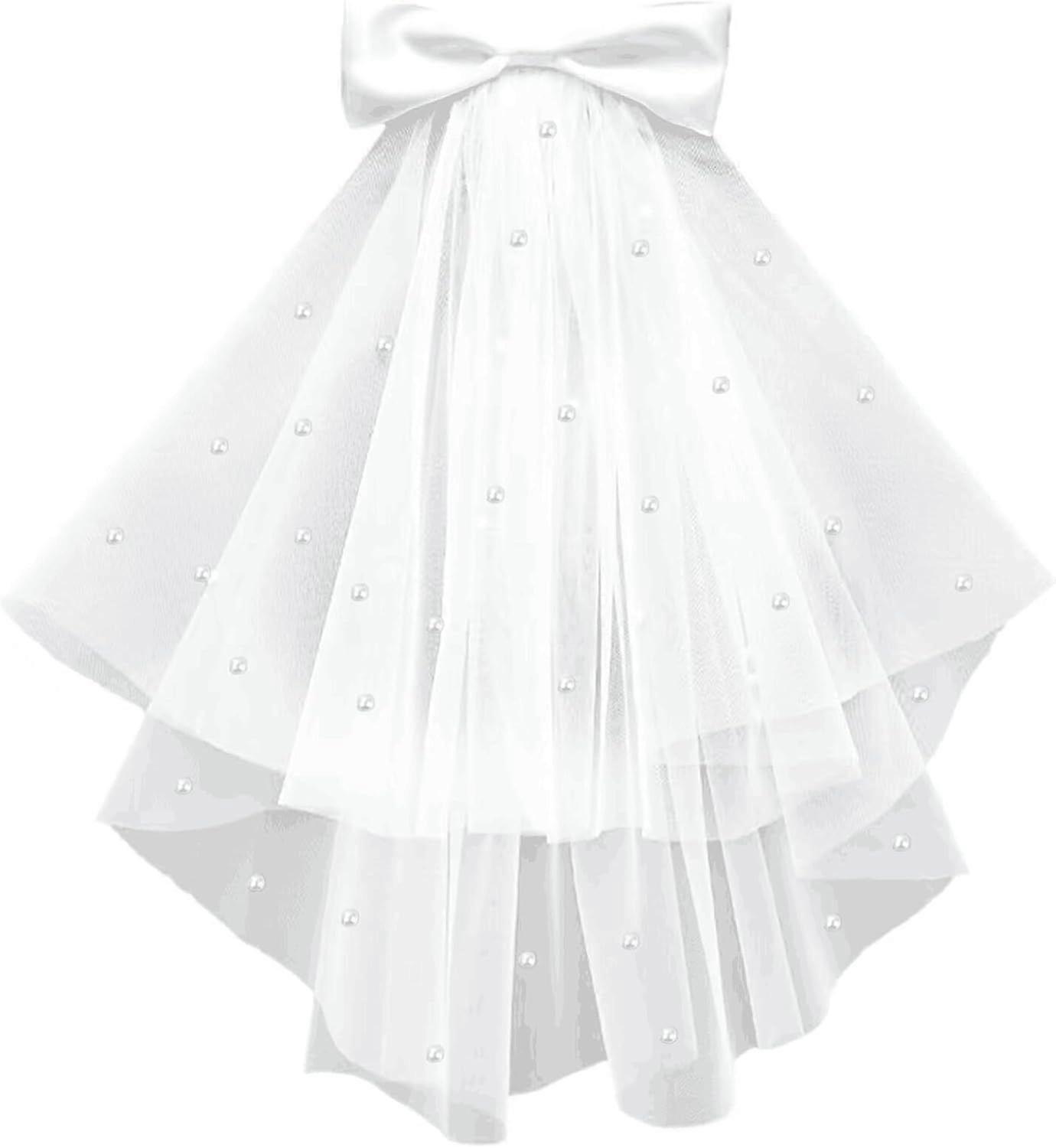 Bachelorette Veil - Pearl Veil Short Veil White Bridal Veil, Veil for Bachelorette Party, Pearl Veils for Brides