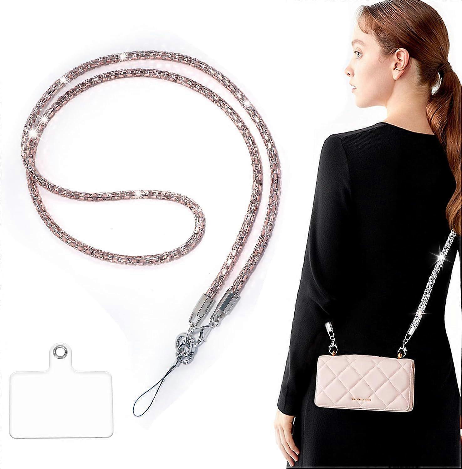 Phone Lanyard Crossbody Uersal Phone Chain, Water Diamond Anti-Theft Lanyard Suitable for most mobile phones and bags Crystal Pink