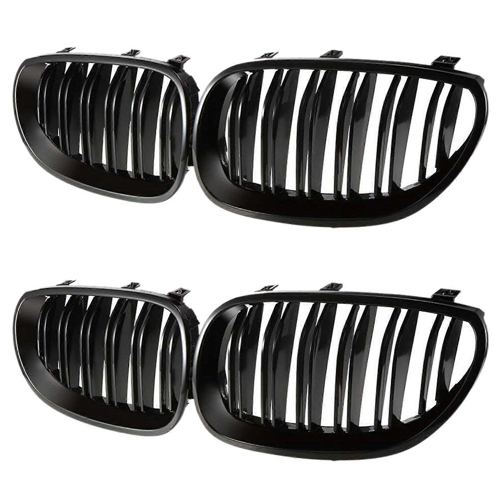 2X Front Bumper Hood Kidney Grill Replacement Dual Slat Sport Grilles for BMW 5 Series E60 E61 2003-2009(Matte Black)
