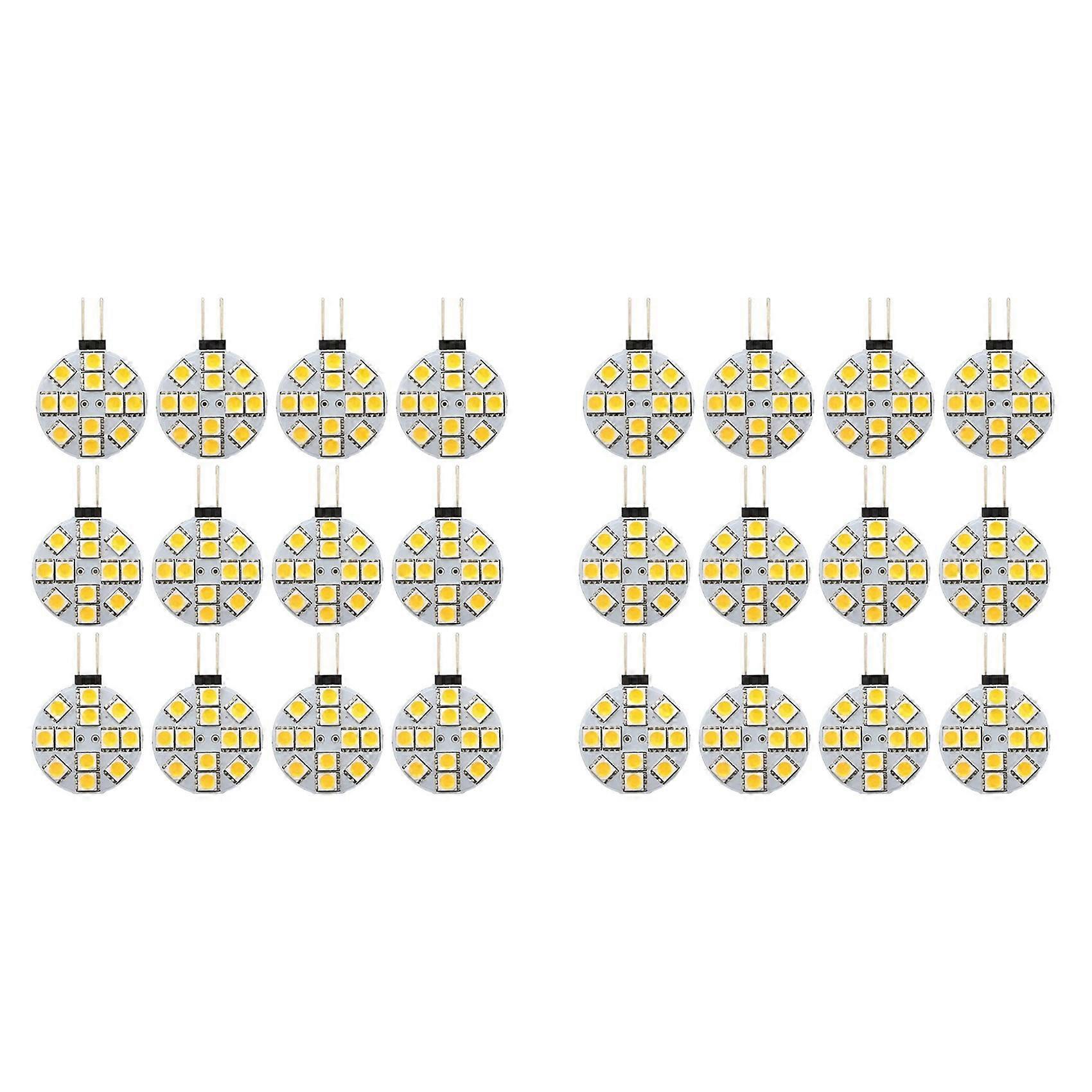 24PCS G4 Puck Lights LED Bulbs Side Pin Base Round G4 5050 12SMD LED RV Camper Light Home Reading Light, Warm White