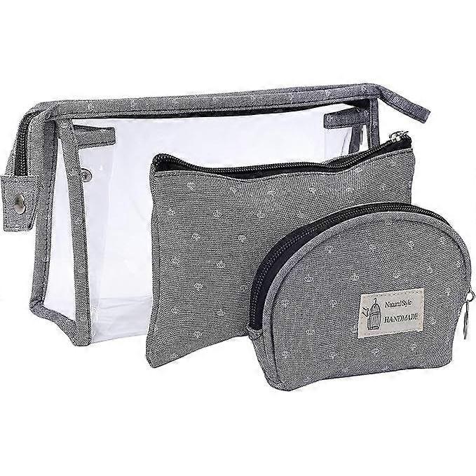 Women's Cosmetic Bags, Transparent Makeup Travel Bag, 3PCS Organizer Case. Exterior material: other. Units in pack: other. Animal origin: other. Season: other. Lining Material: other. Made in: China. Item identifier: 1363707511647474-2080903958383858. Cosmetic Organizer Kit: This 3-piece set of modern makeup or toiletry bags offers different sized bags for all your organized travel beauty needs. Portable Design: The design makes these toiletry bags easy to carry in your hand or slip into your handbag or travel bag, and the transparent design allows you to easily see everything inside. 3 Different Sizes: Large clear PVC bag, medium bag, and small wallet. Conveniently carry your personal items such as cosmetics, knives, lip makeup, facial cleanser, medications, sunglasses, electronic cables, wires, chargers, etc.