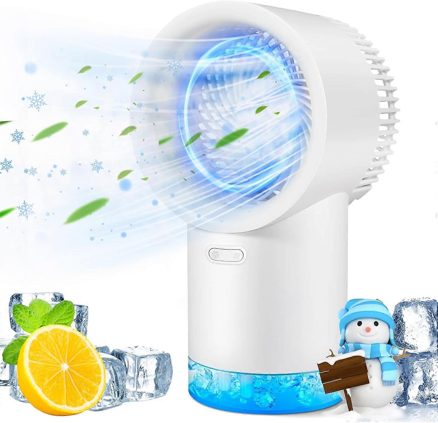 Air Cooler, Portable Personal Mini Air Conditioner, 3 Speed Mode Blue LED Evaporator, USB Rechargeable Cooling Fan-【Sprayer and 3 Speeds】: The air cooler has a spray function and 3 wind modes. Personal air conditioner cooler, fan, air humidifier, three-in-one multifunctional design to meet your different life needs. 【Portable & 3000mAh】: The portable air cooler has a wireless portable design, small size and can be easily carried anywhere. 30-50 hours working time with 3000mAh power bank, the best choice for camping (can be powered by mobile device charging). 【400ml Large Capacity】: The 400ml large water tank of the water cooler can be used for 4-5 hours when it is full. It can spray cold air continuously for hours at night to keep the body cool. 【Energy saving】: Fan coolers do not contain harmful refrigerants, nor do they use compressors like traditional power-hungry air conditioners. Save electricity bills and harm the environment. 【Ultra-quiet, high-efficiency and energy-saving】: This air-cooled fan can operate with low noise (less than 30dB), even at the maximum wind speed, the noise volume is less than 55dB, will not disturb your life, work and sleep, bringing you the most comfortable experience. It's your best choice when you want to cool down in the office, room, home and sports.