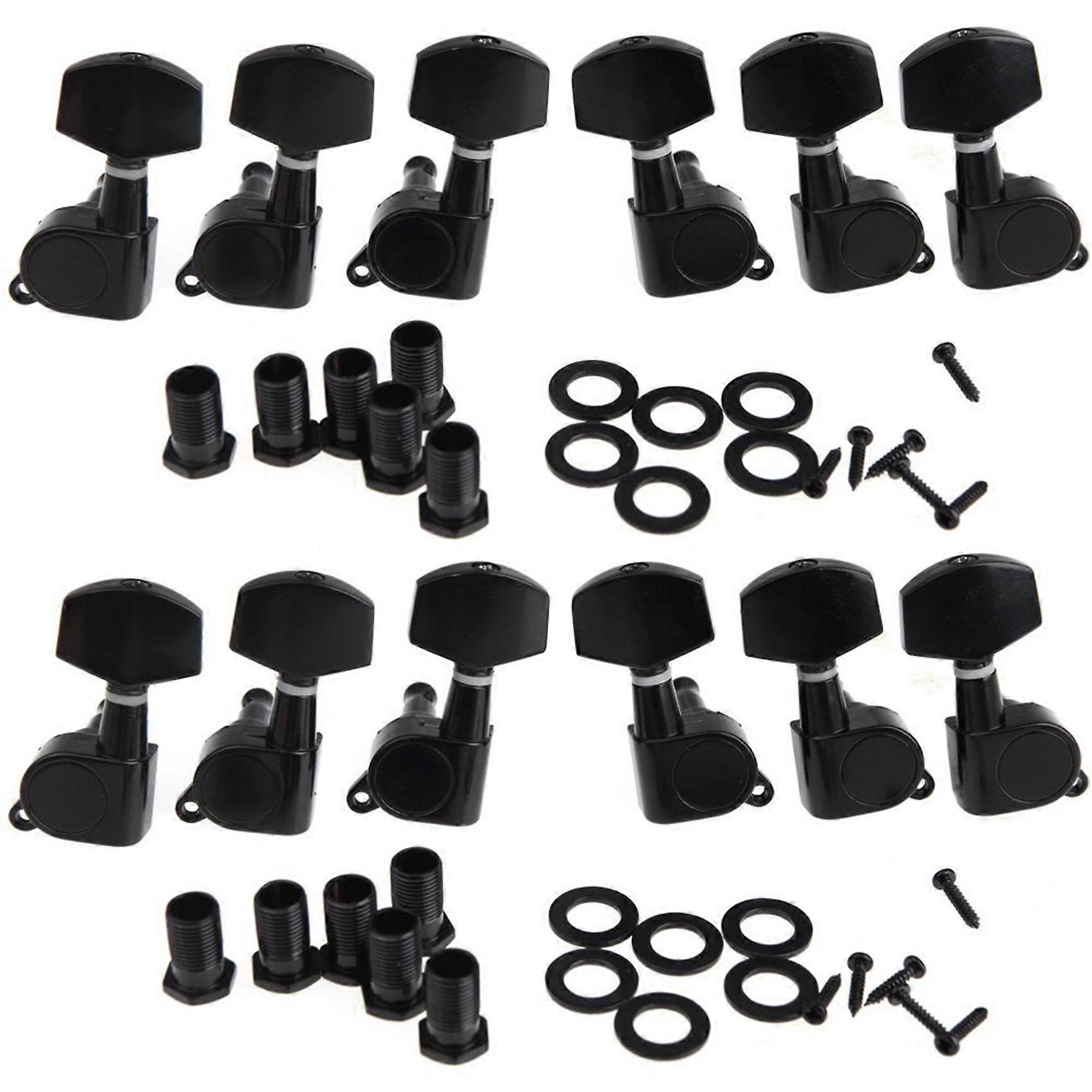 Set of 12 sealed machine heads(6L + 6R). Compatible with electric or acoustic guitar. With robust internal gear. Material: zinc alloy Speed material: copper Color:Black Package List: 12 * Machine Heads 12 * Mounting screws 12 * Ferrules 12 * Threaded sockets