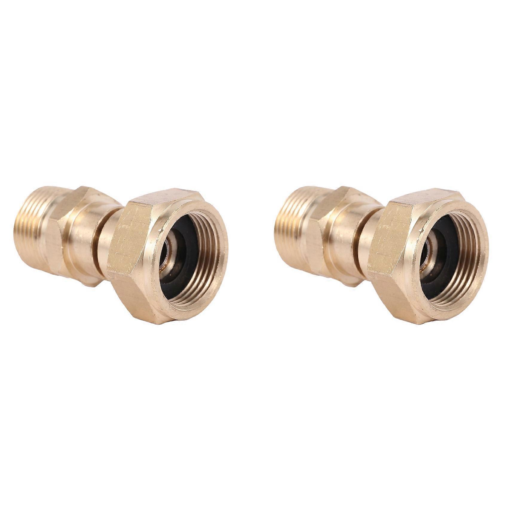 [Attention]M22 14 swivel fitting has 14mm inside diameter,if the washer fitting is 15mm,it may cause leakage.Not compatible with Sun Joe, Campbell, MI-T-M, AR Blue, Stanley, Cleanforce , Simoniz which have M22 15mm fitting. [Scientific Design]Kink free swivel joint for power washer. Prevent hose twist and no kink when spraying. [Compatibility]It connects gun to hose or hose to hose. 360 degree rotation. Reduces stress on the gun, hose and operator. [Special Improvement]Working pressure is up to 3000 PSI and working temperature is up to 140 °F. Tangle free pressure washer coupler is made of high quality brass, resistance to corrosion. Size:M22 14mm Thread Fitting Metric M22 14mm male + M22 female swivel. Universal pressure washer coupler is made of high quality brass, resistance to corrosion. Working pressure is up to 3000 PSI and working temperature is up to 140 °F Application: Kink free swivel joint for pressure washer. Eliminates hose twist and no kink when spraying. 360 degree rotation. Reduces stress on the gun, hose and operator. WARNING:Serious injury may come from high pressure discharge produced by pressure washers. Please keep out of the reach of human body. Colour:copper Material:brass Package Contents: 2 x Kink free swivel joint