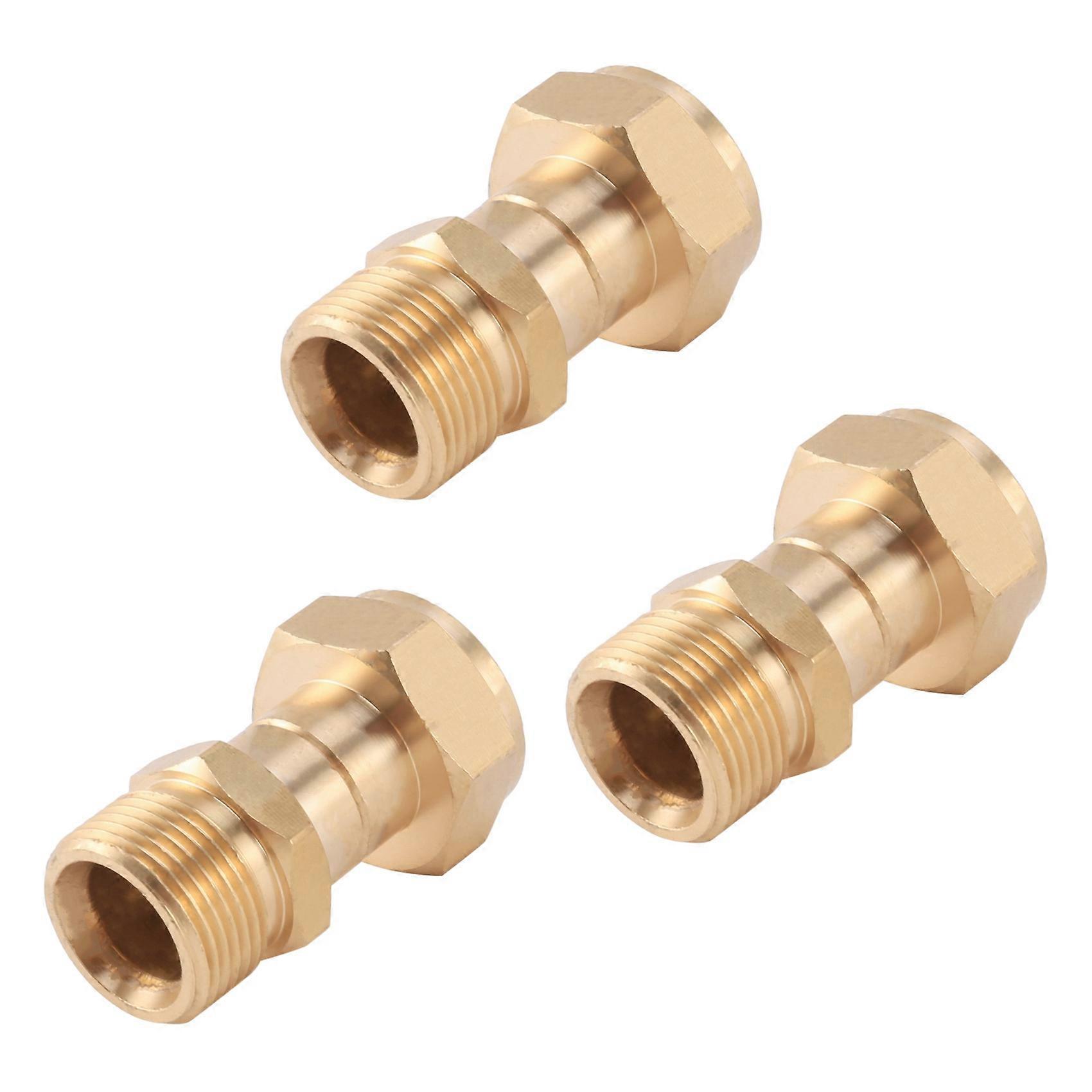 [Attention]M22 14 swivel fitting has 14mm inside diameter,if the washer fitting is 15mm,it may cause leakage.Not compatible with Sun Joe, Campbell, MI-T-M, AR Blue, Stanley, Cleanforce , Simoniz which have M22 15mm fitting. [Scientific Design]Kink free swivel joint for power washer. Prevent hose twist and no kink when spraying. [Compatibility]It connects gun to hose or hose to hose. 360 degree rotation. Reduces stress on the gun, hose and operator. [Special Improvement]Working pressure is up to 3000 PSI and working temperature is up to 140 °F. Tangle free pressure washer coupler is made of high quality brass, resistance to corrosion. Size:M22 14mm Thread Fitting Metric M22 14mm male + M22 female swivel. Universal pressure washer coupler is made of high quality brass, resistance to corrosion. Working pressure is up to 3000 PSI and working temperature is up to 140 °F Application: Kink free swivel joint for pressure washer. Eliminates hose twist and no kink when spraying. 360 degree rotation. Reduces stress on the gun, hose and operator. WARNING:Serious injury may come from high pressure discharge produced by pressure washers. Please keep out of the reach of human body. Colour:copper Material:brass Package Contents: 3 x Kink free swivel joint