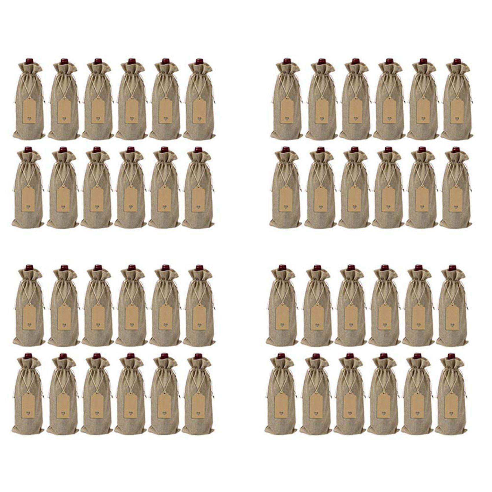 48 Pieces Burlap Wine Bags Jute Wine Bottle Bags with Drawstrings Reusable Wine Gift Bags with Tags