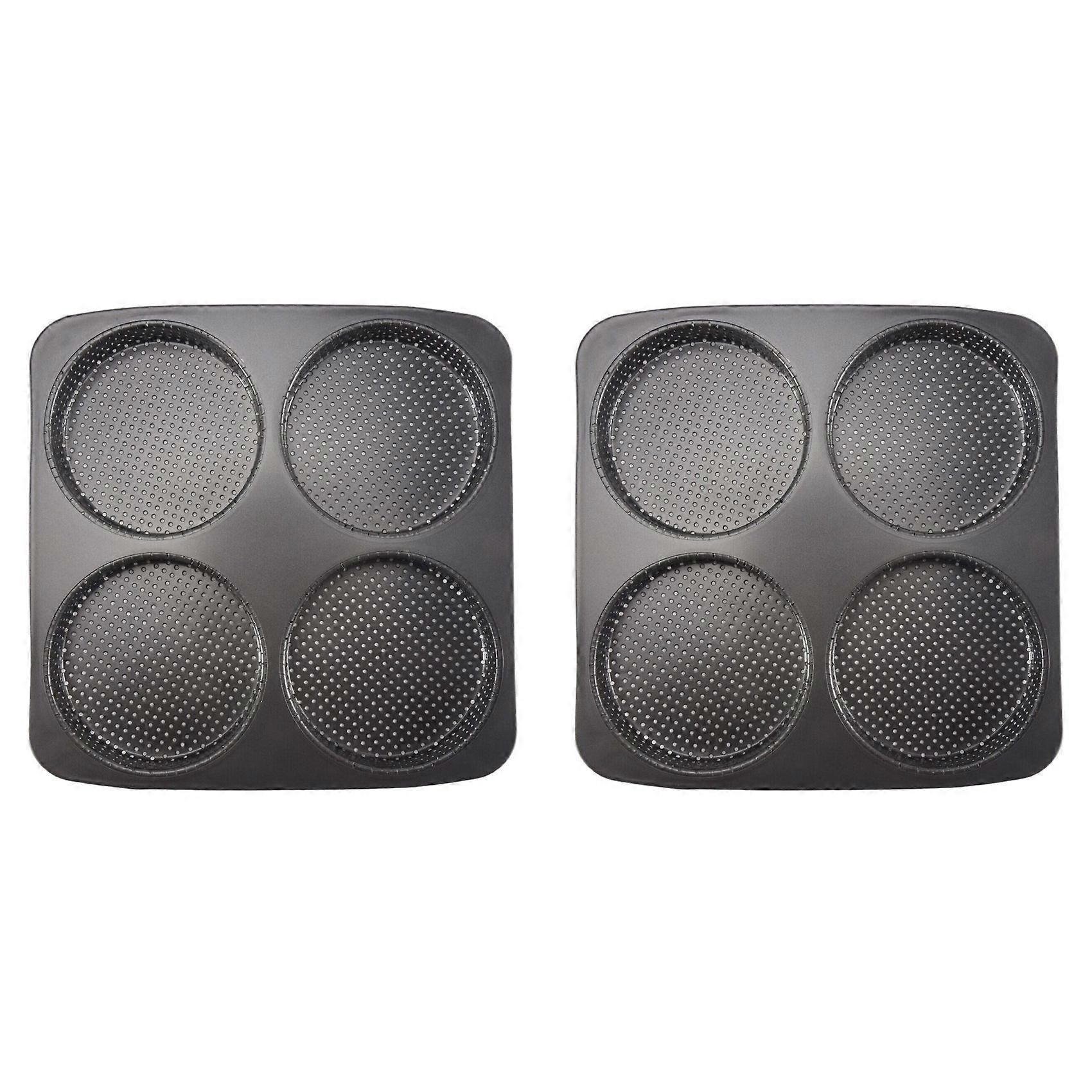 2X Hamburger Bun Pan, 5 Inch Non-Stick Carbon Steel Hamburger Mold, 4 Cup Big Baking Pan for Homemade Hamburger Buns