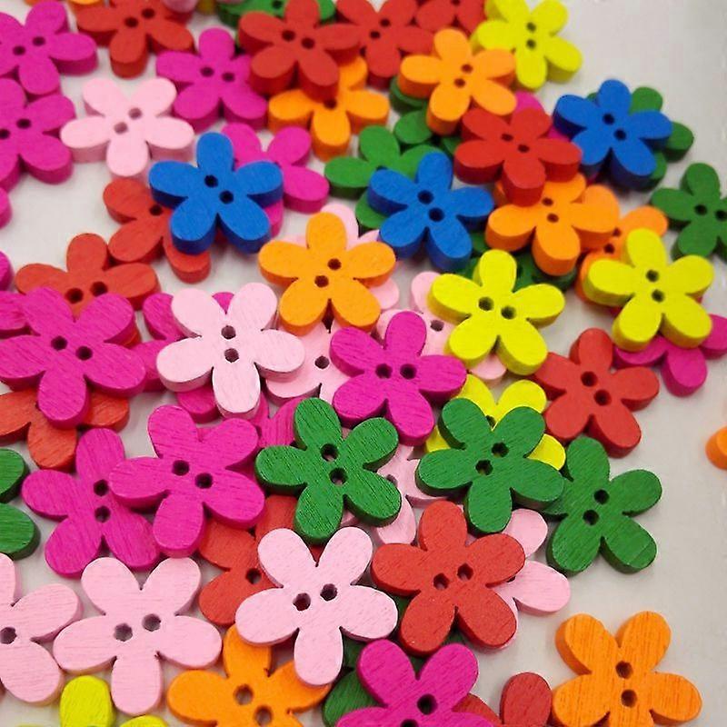 100 Pcs 14x15mm Colorful 2-hole Mixed Flower Wooden Decorative Buttons Suitable for Sewing Clip Arts ��Crafts & Clothing