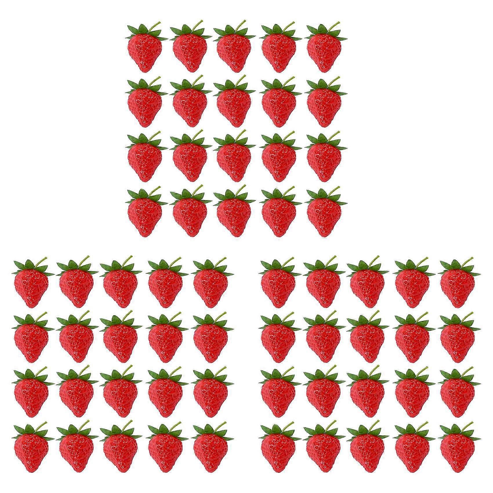 60 Pieces Artificial Strawberry Fake Fruit Strawberries Photography Prop Home Kitchen Cabinet Party Ornament, Small