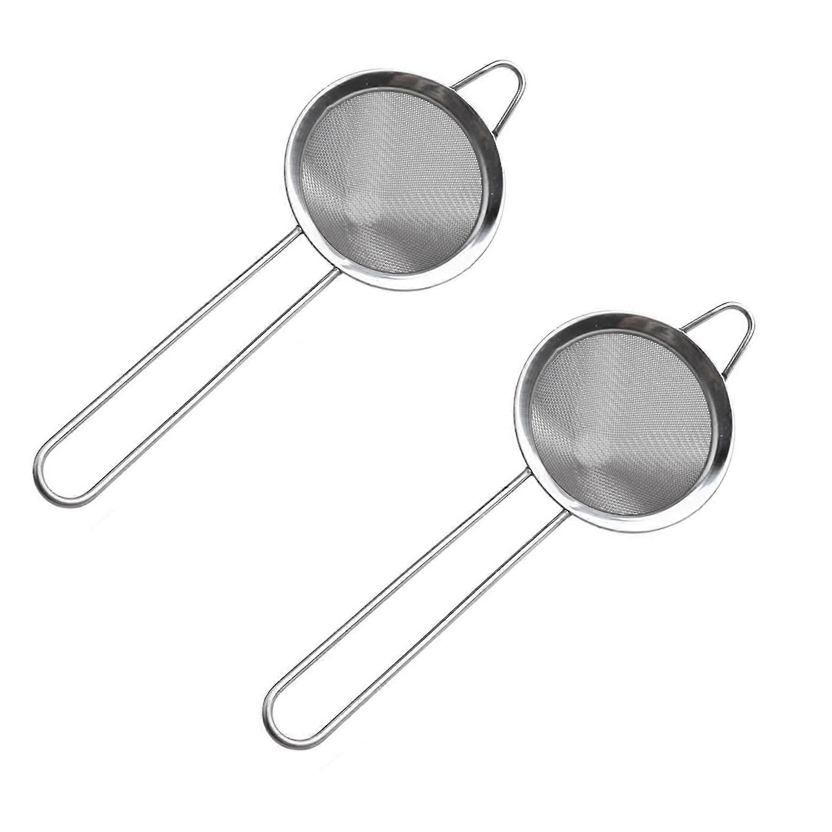 2X Tea Strainer, 3.3 Inch Fine Mesh Sieve Strainer Stainless Steel Mesh Strainer with Handle for Strain Drain and Rinse