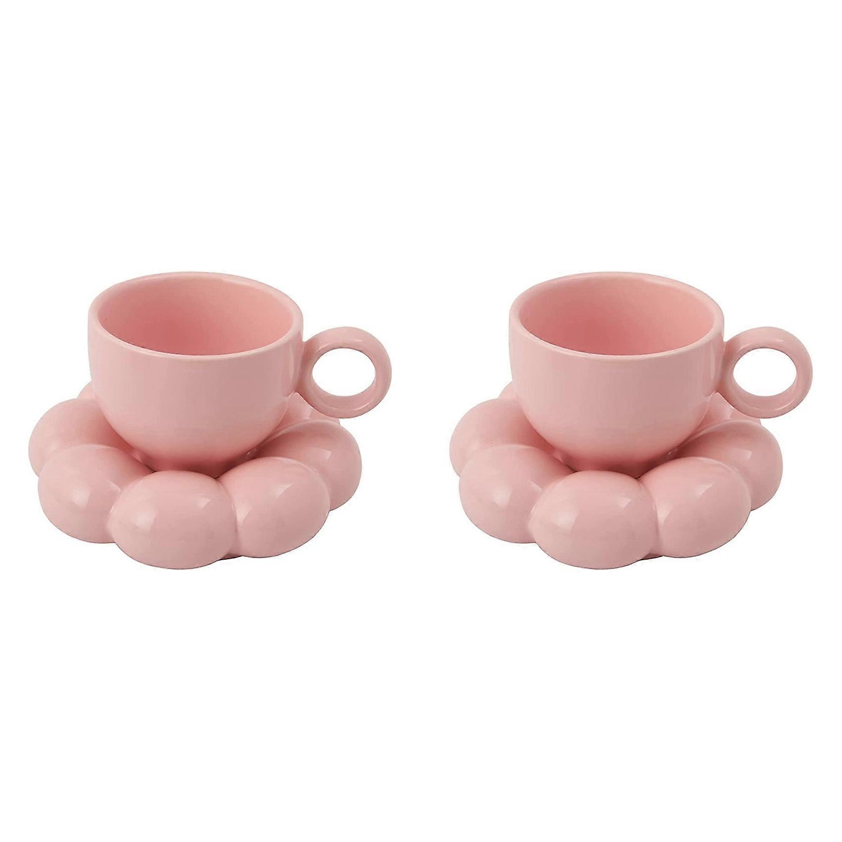 2X Flower Coffee Cup & Saucer Set Cute Mug & Saucer Set Ceramic Coffee Cup with Sunflower Saucer Latte Cups 6.7Oz Pink