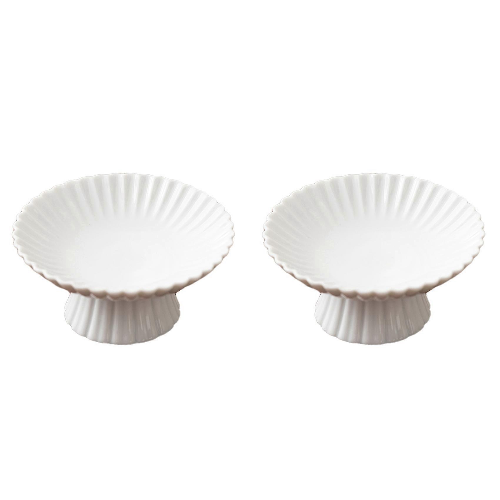 2X Retro Ceramic Cake Stand Fruit Dish Plate Tea Inventory Cake Tray Tea Ceremony Accessories Sweet White Porcelain
