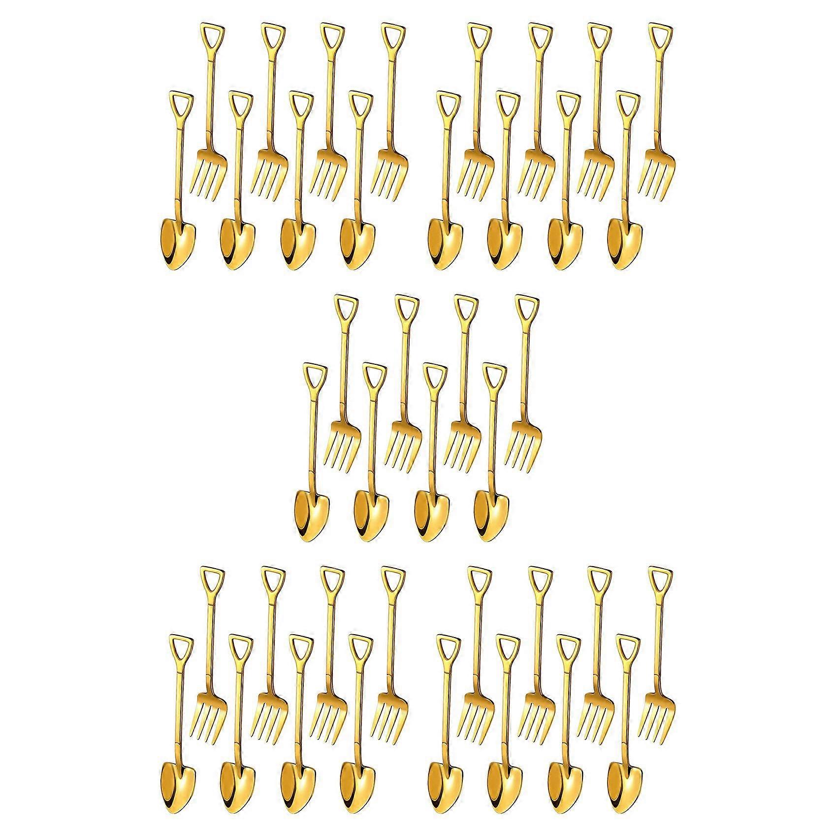 40 Pieces Shovel Spoon Fork Shovel Coffee Spoon Shovel Handle Dessert Spoon Ice Cream Spoon Shovel Shape Fork (Gold)