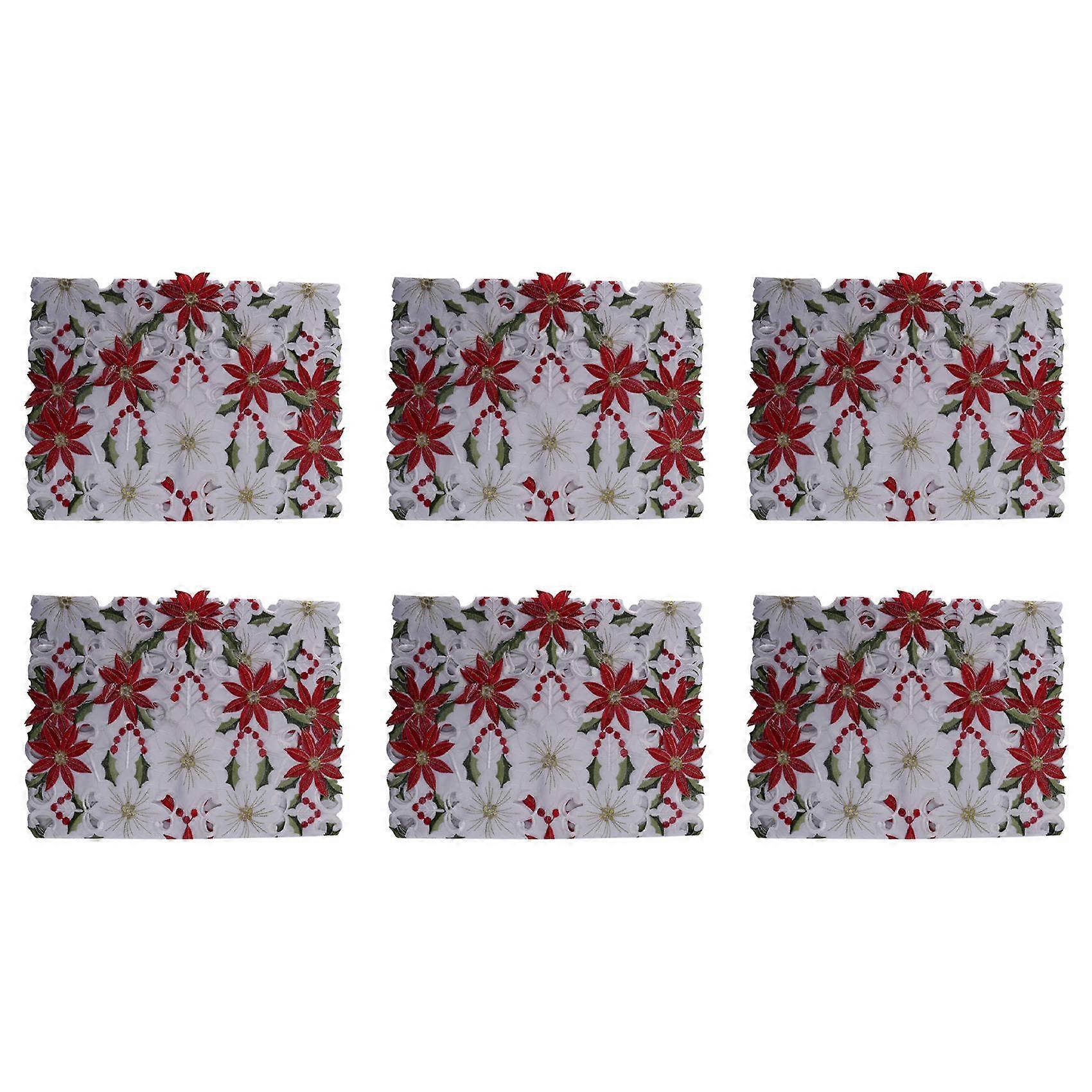 6X Christmas Embroidered Table Runner, Luxury Holly Poinsettia Table Runner for Christmas Decorations, 15 X 70 Inch