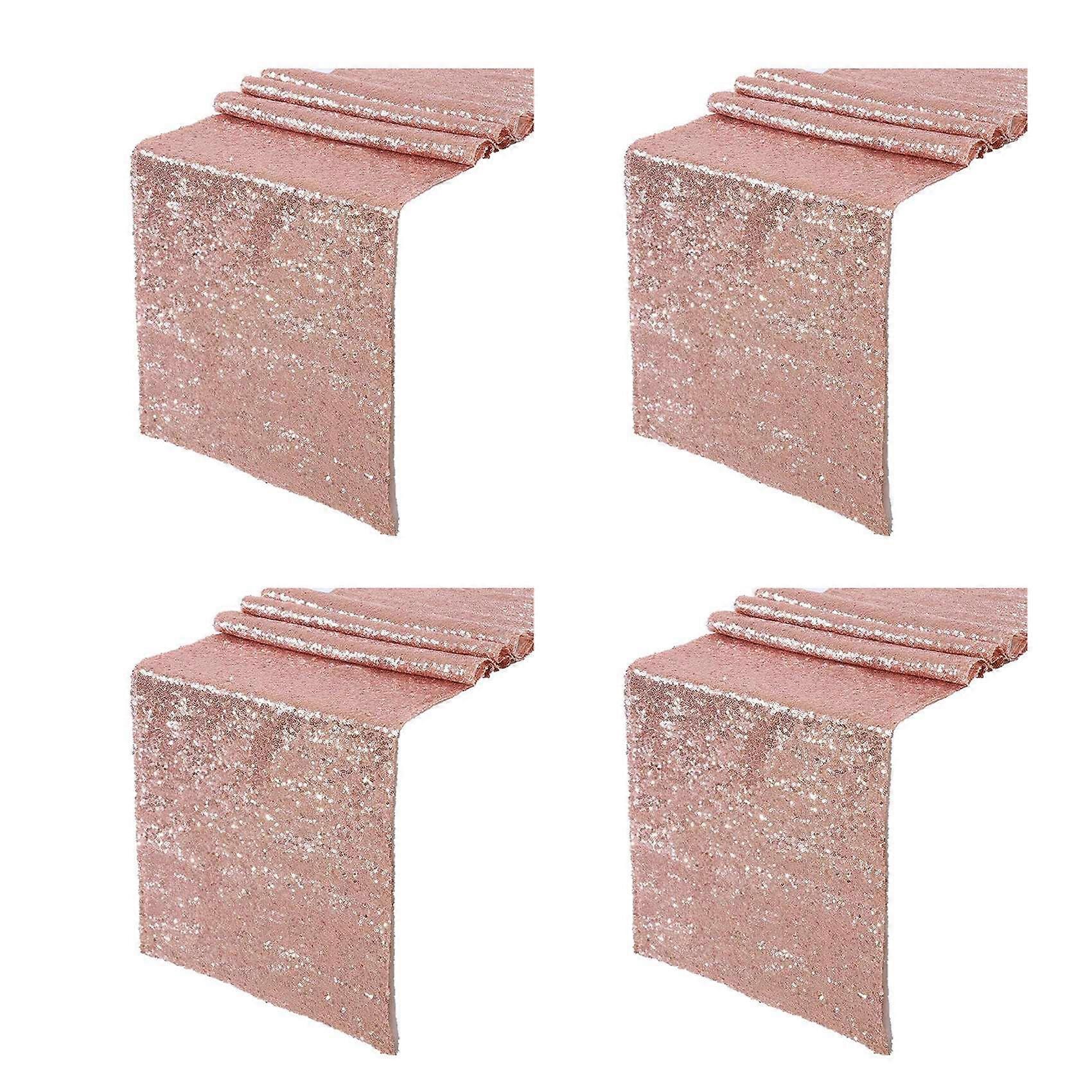 4X Sparkly Rose Gold Sequin Table Runners 12X108 Inch Shimmer Table for Wedding Party Anniversary Birthday Table Cloth