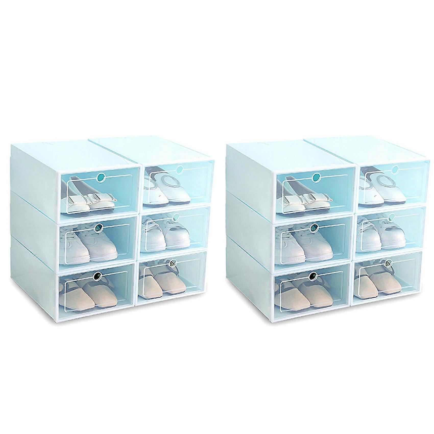 12-Piece Candy Color Shoe Box, Transparent Plastic Shoe Storage Box, Shoe Cabinet Storage Drawer Rectangle Blue