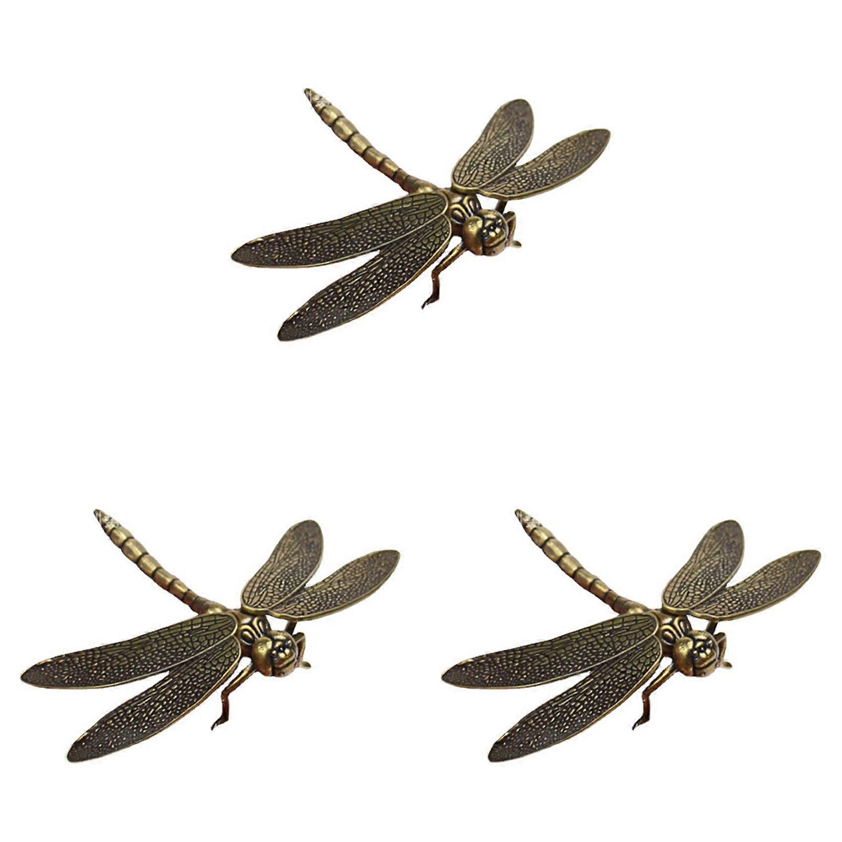 3X Mini Brass Dragonfly Casting Animal Figurine Retro Style Metal Sculpture Home Desktop Craft Decoration
