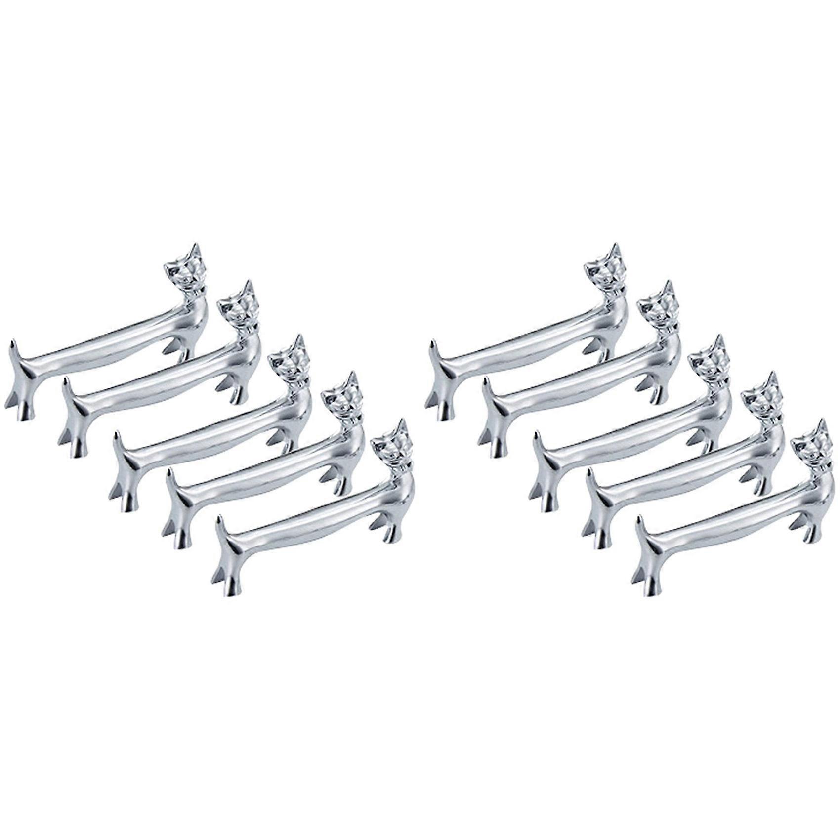 Pack of 10 Pcs Zinc Alloy Chopsticks Spoon Forks Knives Tableware Rest Rack Set, Silver Bow Tie Cat Stand