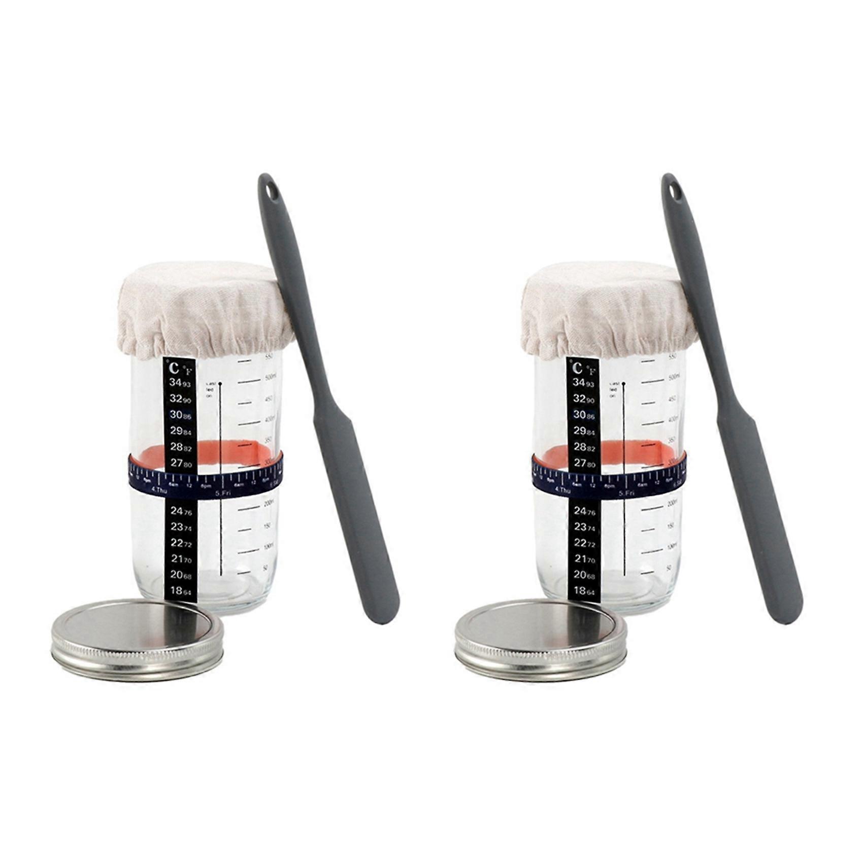 Wide Mouth Dough Starter Kit simplifies the dough process. Perfect for beginners, efficient and functional, it's everything you need for the perfect dough starter. Wide Mouth Bread Starter Jars are made of sturdy food-grade glass and are large enough to serve 3 loaves of soy dough starter. The wide mouth design makes it easier to add flour and water or to clean and stir the contents. It's the right size for making dough starters. Simply move the strap sideways to indicate feeding time and move the strap up and down to record your starting feeding levels. Our goal is to help you set things up so you can quickly and easily feed and keep moving through the day. Once you've mastered the items, you only need about 5 to 10 minutes a day to keep your initiation going - totally manageable. This starter jar is designed for bakers, whether they are to learning or professional bakers Colour:Photo Color Material:glass+cloth Size: 17.5 x 8.1cm Package Contents: 2 x glass jar 2 x cloth cap 2 x spatula 2 x elastic band 2 x temperature paper