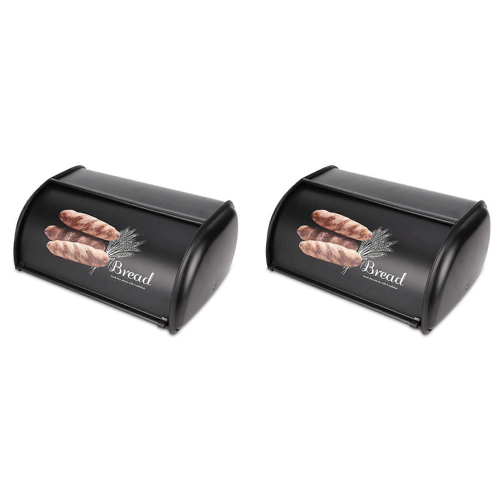 The anti-skid bottom design make this bread storage box be placed on the kitchen table stably and reliably. Large capacity bread box, convenient and practical, suitable for household kitchen use. It offers much convenience for your baking and also is a nice gift for your friends who are fond of baking. Made of high quality iron material, which is reliable, no odor, sturdy and durable in use. The rolling door of the bread box can be easily opened and closed so that you can get the bread and store it safely. Colour: black Material: iron Size: 34.5x23x14.5CM Package Contents: 2 x Bread Box