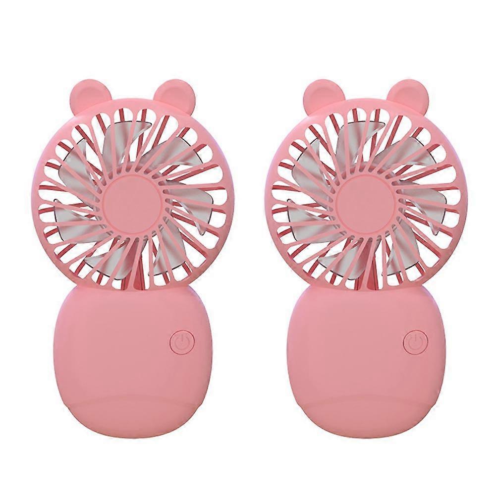 2X Summer Portable Mini Fan Small Pocket Fan Cartoon Fan Hand-Held Fan for Outdoor Mini Electric Fan,Pink