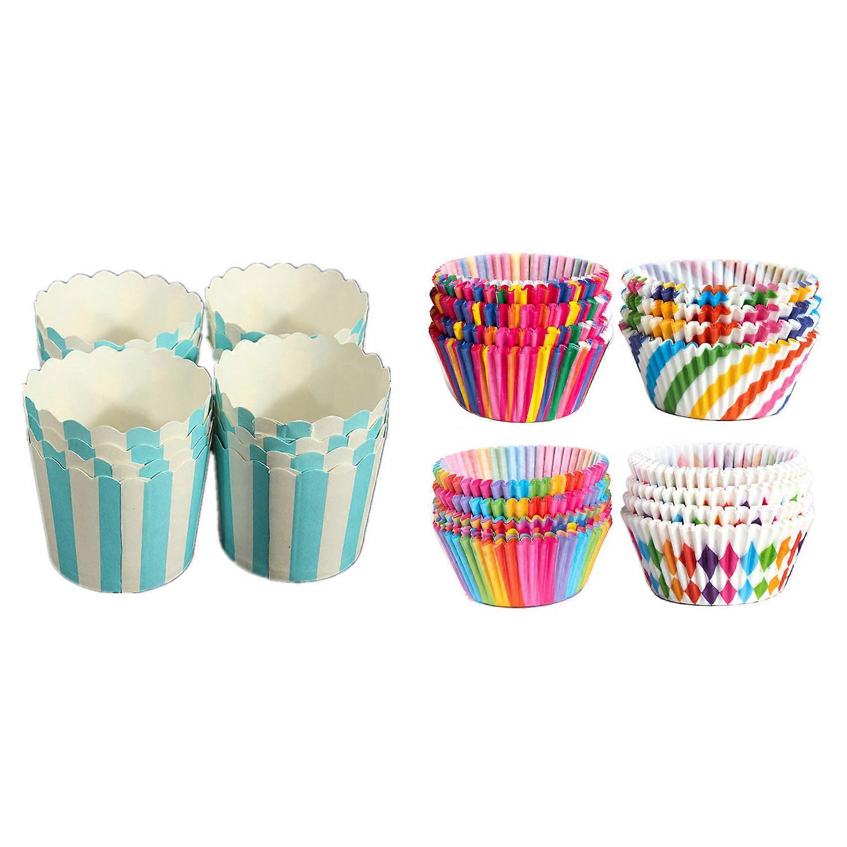 450 Baking tools: 400 x Cake Cups & 50 x Cupcake Cases HEALTHY MATERIAL & NO COLOR FADING:Grease-proof,natural food grade paper cupcake cups,suitable for oven, Miniwave, steam cooking,our cups are specially designed to keep colors from fading after baking, to keep colors bright and fun for every moment. FUN DESIGN:Brightly colored fluted paper cups liners with a fun design,have a nice day start from the morning and your dessert! EMBELLISH YOU LIFE: Our cupcake liner is great holding candies, nuts and other party snacks, colorful and festive way to dress up your cupcakes and muffins,perfect for your theme party, for baking mini treats. Perfect for putting cakes,cupcakes,cookie,candy,dessert and etc cupcake wrapper cake cup cases liners muffin dessert candy kitchen baking wedding party Pattern:Blue Striped Convenient,disposable,lovely and generous It is a good helper of do muffin,it can put in oven perfect for birthdays,wedding,and many other parties and events Bake a good cake can be easily removed from the mold,you can also look beautiful cake considerably Material:Oil proof paper Colour:multicolor Size: A type:4.8 x 4.7 x 5.5cm/1.9inchx1.86inchx2.3inch B type: 3.2x5 x 6.8cm Package Contents: 100 x colored edges Cake Cups 100 x colored whirlwinds Cake Cups 100 x colored diamonds Cake Cups 100 x white letters Cake Cups 50 x Cupcake Cases