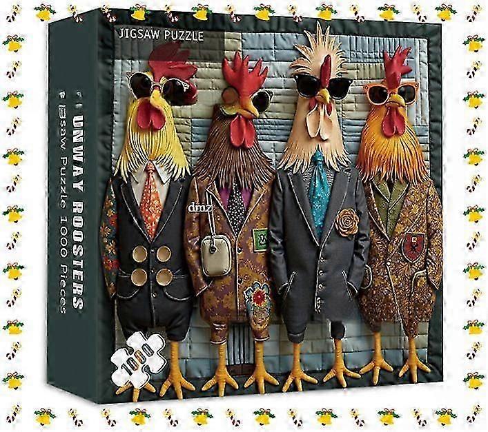Runway Roosters Jigsaw Puzzle 1000 Pieces, Chicken Puzzles for Adults 1000 Piece, Funny Chicken Jigsaw Puzzle, Christmas Gifts for Kids Adultsa